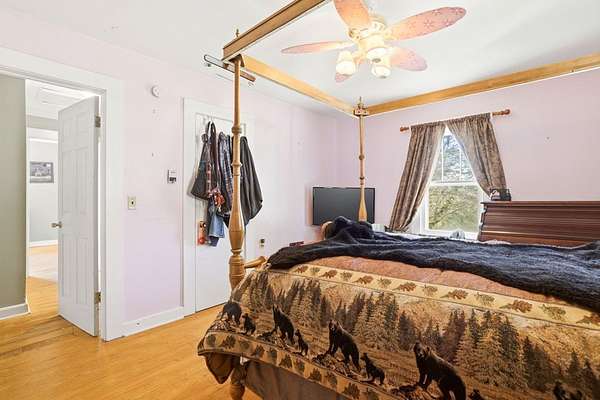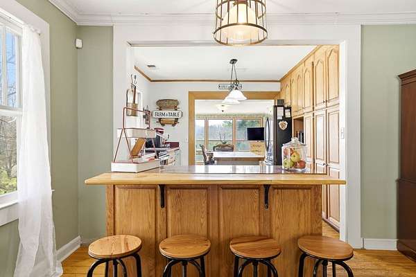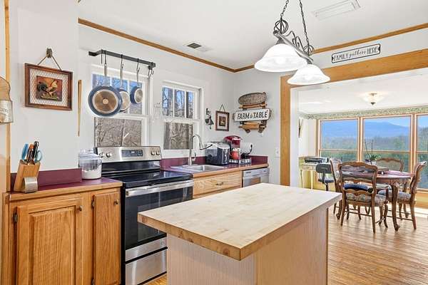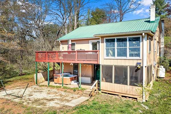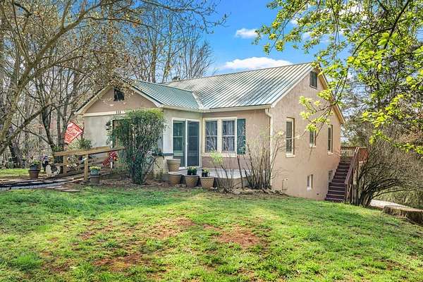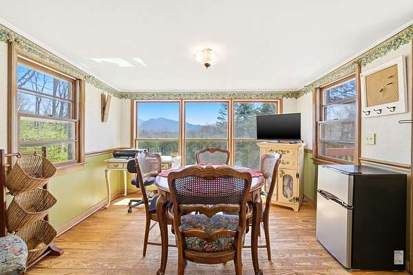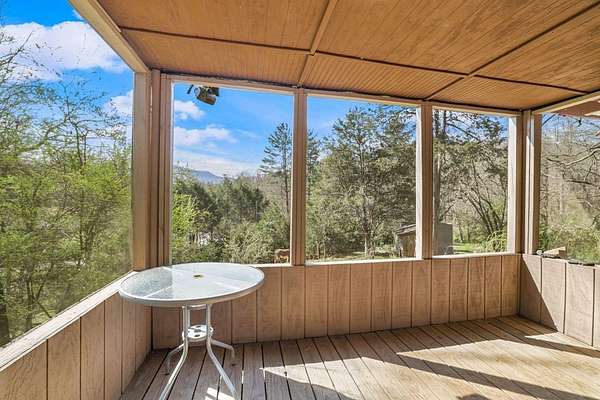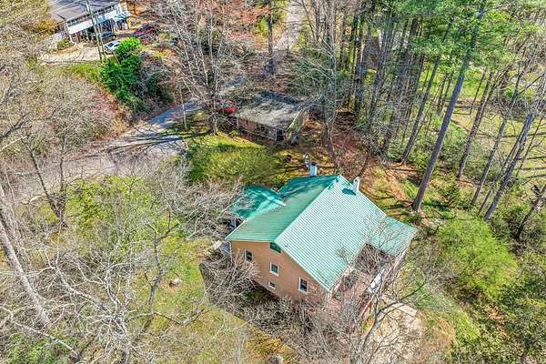 Charming farmhouse on 3.47 acres of usable land featuring fenced pastures—perfect for mini-farm living in the heart of Western North Carolina! Ideally located just minutes to downtown Franklin and a short drive to Highlands and Cashiers, this property offers both convenience and peaceful mountain living. This 3BR/2BA home includes a flexible bonus room ideal for an office or guest space. Enjoy beautiful mountain views while relaxing in the hot tub, which conveys with the property. The inviting country kitchen features newer appliances, two islands for ample prep space, and flows into a bright sunroom currently used as a dining area. Cozy up by the gas log fireplace in the main living space. The partially finished basement offers a bedroom, bathroom, and family room—perfect for guests or additional living quarters. Outside, you'll find a detached double garage, a powered she shed, and a small barn with electricity, currently set up for a donkey (which can convey!). With room for gardening, animals, or simply enjoying privacy, this property offers endless possibilities in a sought-after mountain location. Zoned Franklin Secondary Commercial.