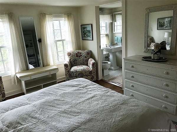 Here is the Summer Retreat you have been waiting for. This 5 bedroom charming antique home has it all. The views, the meadows, the Pool, the Poolhouse/cottage, the rock croppings, the Wisteria covered hammock nook and so much more. Close to shopping, entertainment, dining and strolling on Danbury's, Bethel's and Ridgefield's Main St, minutes to the train station with connection to down county and NYC. The main house offers multiple gathering areas, an open floorplan, 5 bedrooms and some other sleeping spaces if needed. The pool is just fabulous with its stunning stonework and the pool house. There are 1.5 baths in the poolhouse/cottage, a modern kitchen and an open floor plan living space. The cottage bedroom is on the lower walkout level and can be reached via the outdoor stairs only. The back of the cottage offers more views and privacy, the front offers the pool. The home sits on 50+ acres of privacy with the Ives hiking trail basically in the back yard. Dogs are welcome on a case-by-case basis for an additional deposit. No cats, please.
