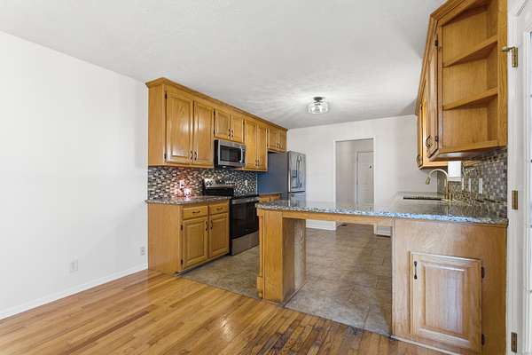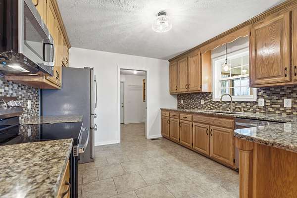 - Dishwasher, Disposal, Electric Oven, Microwave, Refrigerator, Stainless Steel Appliance(s)