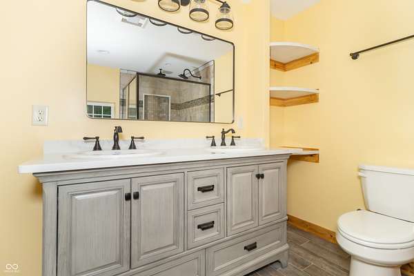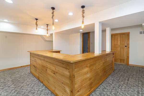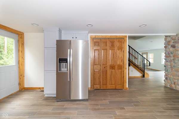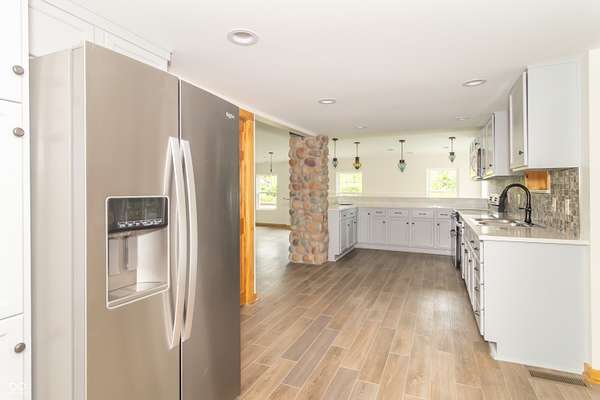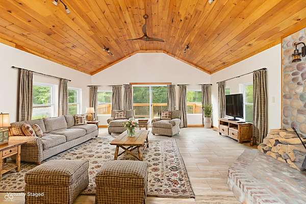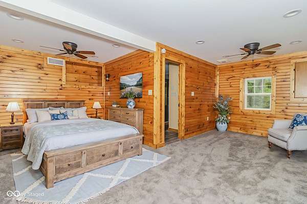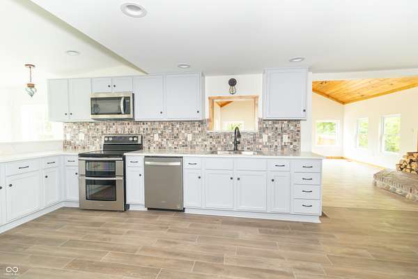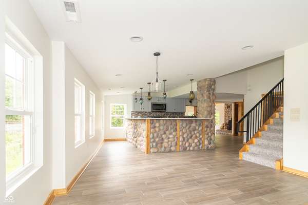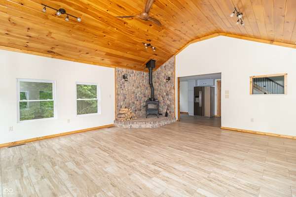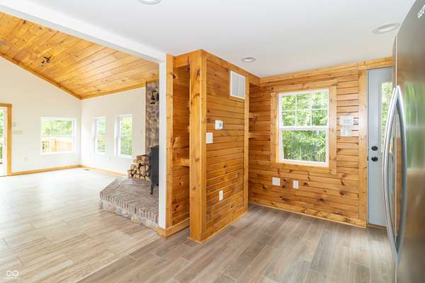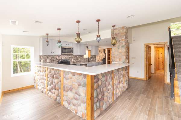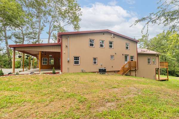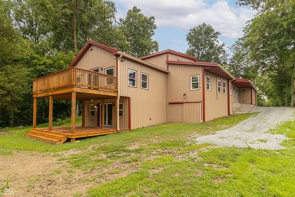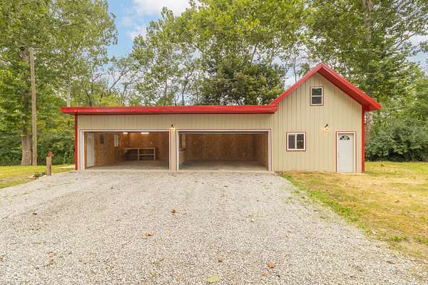 This one-of-a-kind estate offers the perfect blend of comfort, efficiency, & natural beauty. Step inside this custom-built 3-bedroom, 3.5-bath home featuring a spacious layout, a fully finished walkout basement, & stunning attention to detail throughout. The heart of the home is the lodge-style great room, showcasing a beautiful wood-burning stone fireplace that matches the custom stonework in the kitchen. The chef's kitchen is a true showstopper, boasting slate countertops, custom oak cabinetry, upgraded lighting, a step-in pantry, all-new stainless steel appliances, & ceramic tile flooring. Efficiency meets craftsmanship with a 3-zone HVAC system, cellulose spray foam insulation from the basement floor to the ridge of the roof, & fiberglass insulation in all exterior walls-designed to keep your utility bills low & comfort high. Enjoy the outdoors from your double-layer custom deck or head down to your private dock on Lick Creek. Whether you're entertaining or unwinding, the covered front porch is the perfect place to kick off your boots & relax. The home also features a 4-car detached garage, custom bathrooms with glass-enclosed showers (including a spa-like primary bath), & a basement built for fun-with a full bar, rec room, half bath, & refrigerator hookup. This is more than a home-it's a lifestyle. Don't miss your chance to own this unique creekside retreat!