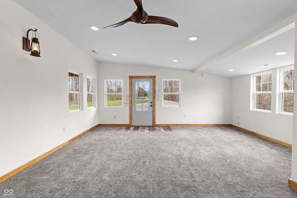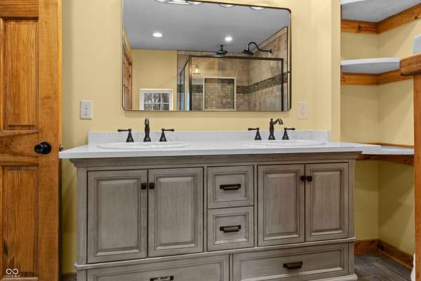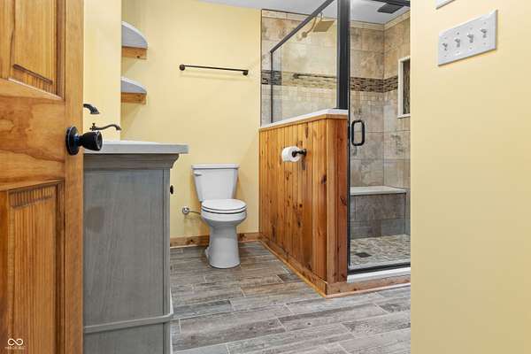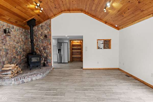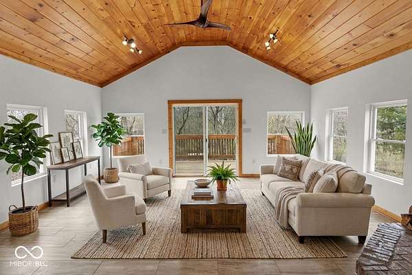 Rustic creekside retreat! Custom home featuring a lodge-style great room with a stunning stone fireplace. Chef's kitchen offers slate countertops, oak cabinetry, & new stainless steel appliances. Fully finished walkout basement includes a bar, rec room, & half bath-perfect for entertaining. Energy-efficient features include 3-zone HVAC, spray foam insulation, & fiberglass walls. Outdoor living shines with a double-layer deck, covered front porch, & private dock on Lick Creek. 4-car detached garage, spa-like bathrooms, security cameras, & exceptional attention to detail throughout. A one-of-a-kind blend of comfort, craftsmanship, & natural beauty-ideal for entertaining or relaxing. Don't miss this unique estate!