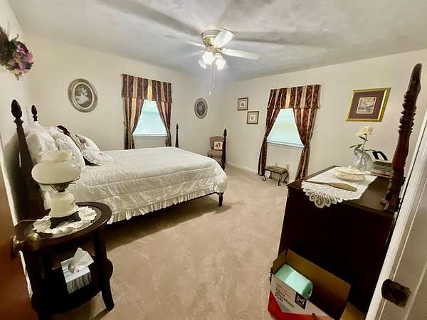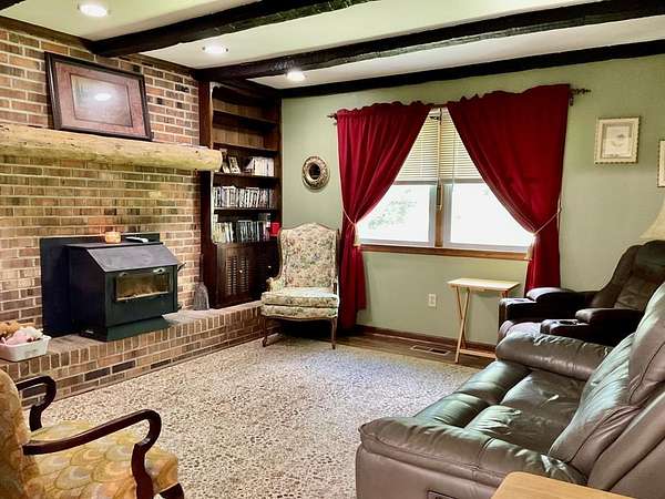 MINI FARM 18.5 Acres +- of lovely land backs up to the State Forestry. Approximately 10 Acres Open land, great for farming or horses. The home on this property had many upgrades to it in 2022-2024. New Heatpump & duct work, Metal Roof, well pump, hot water heater, flooring, windows, cold water storage tank, and much more. This property is very privately located backed up to the state forestry with much wildlife. The full basement is partially finished (973 sq ft) with a lovely kitchen, greatroom with brick fireplace, an office w/closet that would potentially make a bedroom. The basement seems ideal for a rental, inlaw suite, home office or other. Storage galore in the unfinished area of basement, outside find a 24x48 SHOP, 24x32 Garage, 10x10 shed, 12x16 patio, 12x16 deck (needs work), 5x22 front porch. 2 brick fireplaces, wood stoves convey.
