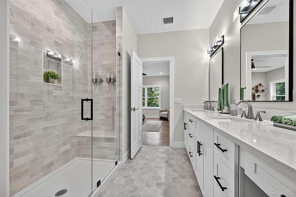 On the main level, you will find three generously sized bedrooms, including a main suite that serves as a private retreat. The suite includes a full bath equipped with modern fixtures and finishes, as well as a spacious walk-in closet offering ample storage. Two additional large bedrooms share a well-appointed main bath, ensuring comfort and convenience for family and guests alike.