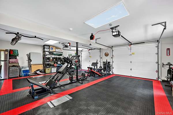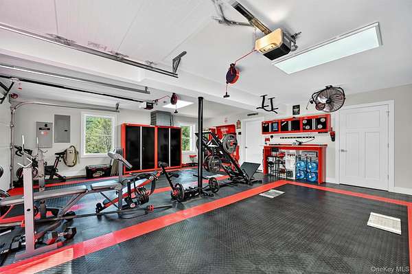 - Temperature-controlled garage with blown foam insulation, heating, and cooling
