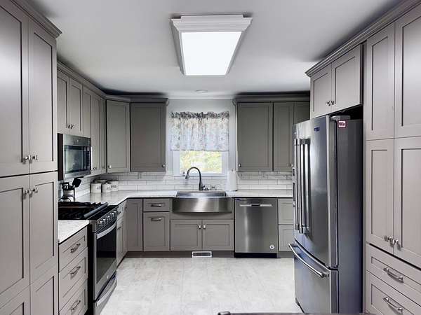 - Dishwasher, Gas Range, Microwave, Refrigerator, Stainless Steel Appliance(s)