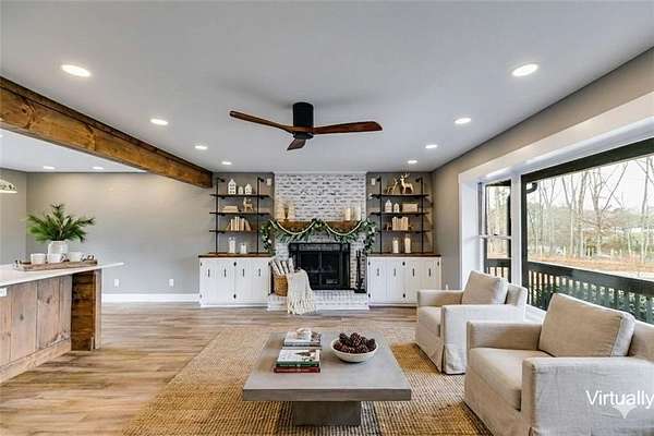 Modern Country Living | Renovated 4BR/3BA Home on 1.5 Acres with Finished Basement Near I-20 Welcome to this fully renovated 4-bedroom, 3-bathroom home offering a rare combination of modern updates, private acreage, and a convenient location just minutes from I-20, Villa Rica, and local shopping and dining. Nestled on a quiet 1.5-acre lot, this move-in ready property delivers style, space, and functionality inside and out. Inside, you'll find a bright and airy open-concept layout perfect for both relaxed living and entertaining. The family room features a striking wood-beamed ceiling, a cozy fireplace framed by custom built-ins, and large windows that flood the space with natural light. The standout kitchen is thoughtfully designed with bold green shaker cabinets, quartz countertops, stainless steel appliances, a farmhouse sink, custom wood vent hood, open shelving, and an oversized island with bar seating and extra storage. Just down the hall, three spacious bedrooms include a serene primary suite with a spa-like bath-complete with subway tile, dual rainfall shower heads, a vessel sink, and modern fixtures. A second full bathroom offers updated lighting, stylish finishes, and a designer mirror. The finished daylight basement adds 902 square feet of flexible living space, including a fourth bedroom, full bath, large bonus room, storage, and rustic touches like shiplap walls and a corrugated metal ceiling-perfect for a home theater, office, gym, or guest space. Outside, unwind in your backyard oasis surrounded by mature trees, fruit trees, grapevines, and a dedicated garden area. A custom fire pit and matching storage shed (white with black trim) complete the retreat. If you're searching for a stylish, turn-key home with character, privacy, and proximity to major conveniences-this one is a must-see. Contact us today to schedule your private tour!
