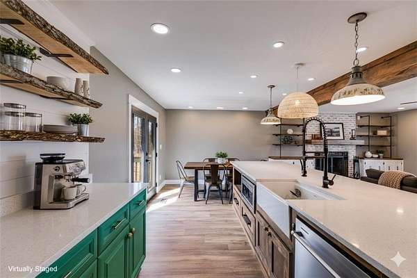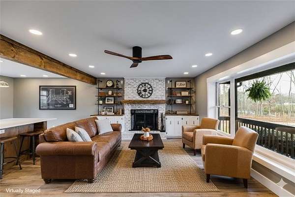 Nowhere Else in Villa Rica-Fully Renovated 4BR Home on 1.5 Acres with Finished Basement for $399K! Start the year with a rare find-a fully renovated 4-bedroom, 3-bathroom home with a finished daylight basement and 1.5 private acres just minutes from I-20, Villa Rica, and all the shopping and dining the area has to offer. At $394,000, it's the best blend of space, style, and value on the market. Inside, the light-filled, open-concept layout is designed for both everyday living and entertaining. The spacious family room features a wood-beamed ceiling, cozy fireplace with custom built-ins, and oversized windows that bring in natural light and backyard views. The standout kitchen brings bold character with green shaker cabinets, quartz countertops, stainless steel appliances, a farmhouse sink, open shelving, and a custom wood vent hood. The oversized island offers extra storage and bar seating-perfect for your morning coffee or weekend brunch. On the main level, you'll find three generously sized bedrooms, including a serene primary suite with a spa-like ensuite featuring subway tile, dual rainfall shower heads, a vessel sink, and modern fixtures. A second full bath completes the main level with updated lighting and designer finishes. The finished walk-out basement adds 902 additional square feet of flexible living space with a fourth bedroom, full bathroom, large bonus room, and a storage area-plus rustic touches like shiplap walls and a corrugated metal ceiling. Ideal for a home office, gym, guest suite, or media room. Outside, the backyard is a true retreat, complete with fruit trees, grapevines, garden space, and a custom-built fire pit. A matching storage shed (white with black trim) offers space for tools, hobbies, or a workshop. Beyond the garden, a large cleared area tucked at the back of the property offers even more potential-whether you dream of a future pool, detached garage or workshop, backyard games, or even a mini orchard or chicken coop, there's room to bring your vision to life. If you're looking for move-in ready living with acreage, updates, and convenience-you won't find anything like this at $399K in Villa Rica. At the end of the gallery, you'll find virtually staged photos illustrating a creative vision for maximizing privacy and outdoor enjoyment. Schedule your private showing today and make 2026 your year of smart moves!
