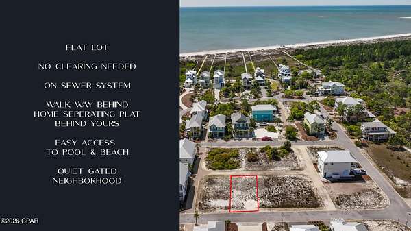 Create Your Coastal Dream Retreat in Jubilation! Discover the perfect canvas for your beachside vision in the exclusive, gated community of Jubilation, tucked away along the serene southern stretch of Cape San Blas. Known for its uncrowded, sugar-white beaches and laid-back coastal charm, this homesite offers an unparalleled opportunity to design your own private paradise. Envision mornings filled with the gentle rhythm of the Gulf, salty breezes drifting through your custom-built retreat, and sun-soaked days spent exploring miles of scenic bike paths or unwinding along pristine shores. Whether it's paddleboarding at sunrise, kayaking through calm waters, or simply relaxing with your toes in the sand, every day invites effortless coastal living. Jubilation enhances your lifestyle with exclusive owner amenities, including a beautifully designed clubhouse and a resort-style pool. A quick bike ride or golf cart cruise brings you to pet-friendly Gulf beaches, where breathtaking sunsets paint the sky each evening. Perfect as a weekend getaway or a forever home, this property offers more than just land--it offers a lifestyle. And when you're ready for a touch of local flavor, the charming town of Port St. Joe is just a short drive away, featuring boutique shopping, fresh seafood, and a welcoming coastal community. This is your opportunity to build not just a home, but a life where every day feels like a vacation.