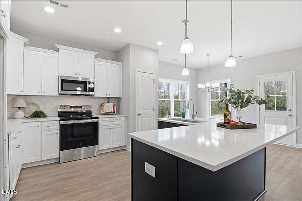 The Hazel II is an impressive new construction home in the sought-after Massey Farm community, offering 1,865 sq. ft. of luxury living space on a LARGE 2.84 ACRE LOT! The kitchen is the centerpiece of this beautiful home, showcasing a massive ISLAND with a BREAKFAST BAR, SOLID QUARTZ COUNTERTOPS, top-of-the-line STAINLESS STEEL APPLIANCES, a stylish TILE BACKSPLASH, and SOFT-CLOSE CABINETRY with upgraded pulls and WOOD SHELVES in the pantry. The spacious OWNER'S SUITE easily accommodates KING-SIZE furniture and features TREY CEILINGS, a HUGE WALK-IN CLOSET, and a luxurious bath with DOUBLE VANITY and QUARTZ COUNTERTOPS. Enjoy outdoor living with COVERED FRONT AND BACK PORCHES perfect for relaxing or entertaining. Additional highlights include a LARGE FINISHED BONUS ROOM upstairs and a TWO-CAR GARAGE for added convenience. Conveniently located near Goldsboro and Seymour Johnson Air Force Base, with easy commutes to Raleigh, Wilson, and Greenville.