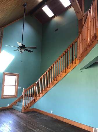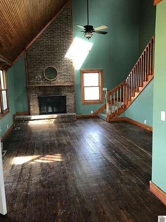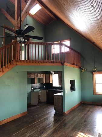 Est $769/moGreat cabin with 2 bedrooms and 2 baths on 2 acres at the end of a dead end road. Home features a large covered front porch, a living area that has vaulted wood ceilings, brick wood burning fireplace, and wood floors. Upstairs loft overlooking living area offers bonus space. HUGE 100'x24' pole barn, concrete floors with 4 bays with doors, tractor/equipment storage and workshop with bath.