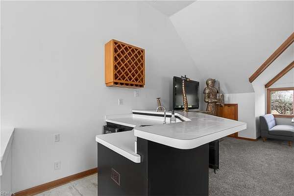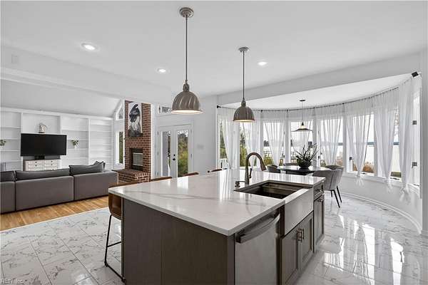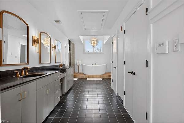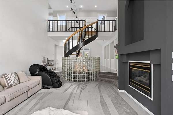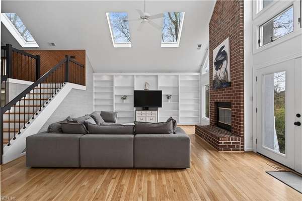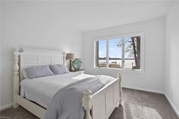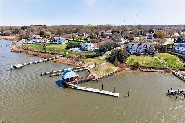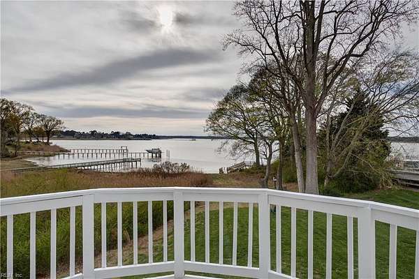 Stunning waterfront home in desirable Nansemond River Estates offering breathtaking sunsets and deep water access (approx. 30 ft. in channel). This spacious 5-bedroom, 3 full bath, 2 half bath residence features over 4,100 sq ft on 1.57 acres. Enjoy a fully renovated eat-in kitchen with open floor plan, perfect for entertaining. Several bathrooms have been updated, including the primary bath with a new jetted tub. Architectural highlights include a grand curved staircase and soaring cathedral ceilings. Outdoor living shines with a large wood deck, renovated private dock, and a beautifully designed tiered edible and butterfly garden. Additional features include a sprinkler system with new control panel. Exceptional blend of comfort, style, and waterfront living!