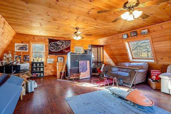 Location, Location, Location!!! Sprawling Sundrenched ranch located on a peaceful, less traveled road offering endless potential. Single level living at its best! This home boasts 4 bedrooms, 1 bath, bonus room above garage, charming details like wood ceilings, crown molding, a bay window and a cozy pellet stove to start! A must see! Spacious rooms. The kitchen and dining room each open to separate decks, creating great spaces for entertaining. Bring the outside in!! Enjoy 3 acres of peaceful mother nature! Enjoy morning coffee or afternoon drinks on one of your multiple decks. This home offers the ultimate blend of comfort and seclusion. The heated two car garage includes access to a finished bonus area above, (would be perfect for "man town" or office space), adding extra versatility. Newer furnace and flexible floor plan! Single level /One level living at its best! Come make this home your own!
