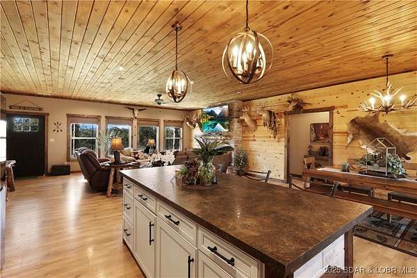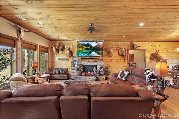 Welcome to your peaceful home in the country! Only 28 minutes to Osage Beach but feels like you're far, far away. This custom-built home on 61 acres plus the 36 x 40 detached 3 car garage with 3 garage doors and a butcher shop including a walk-in cooler is just the beginning! Plenty of room to spread out and have cattle, chickens, goats, horses, lots of wildlife, deer (lots of deer) and turkey. You will love the attention to detail on the construction of this home! Check out open concept kitchen with walk in pantry, great room with fireplace, dining room and master suite with fireplace. Fall in love with the unique wood accents. Maybe you'd like to have a farm and raise all your own vegetables! Enjoy the covered patio and outdoor kitchen or take a dip in the above ground pool. Land is fully fenced with some cross fencing and a creek. Chicken coop is also custom with attached chicken run. You can work in town and escape to the country in just minutes. If you are looking for peace and serenity, this is it!
