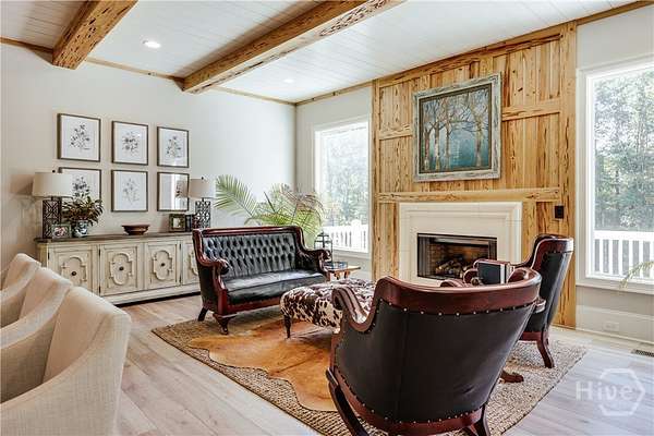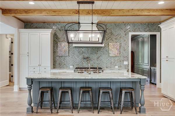 Set on eight private acres in Oconee County with an Athens address, this Georgian-inspired estate combines timeless architecture with sophisticated design. The main level features a formal dining room, a stunning kitchen with quartzite counters, custom cabinetry, wine tower, pecky cypress beams, and a hidden walk-in pantry. The adjoining living area and screened porch overlook manicured grounds and a resort-style pool with spa. The primary suite and an additional guest suite are located on the main level. Upstairs includes a media room, two bedrooms joined by a Jack-and-Jill bath, and a third guest suite. The terrace level offers a full living area, bedroom, bath, and direct access to the pool and full pool bath. Additional highlights include an indoor basketball court, three-car garage, and inviting front porch surrounded by mature trees and natural privacy.