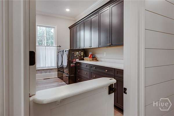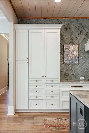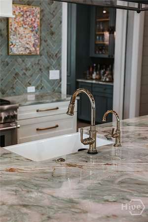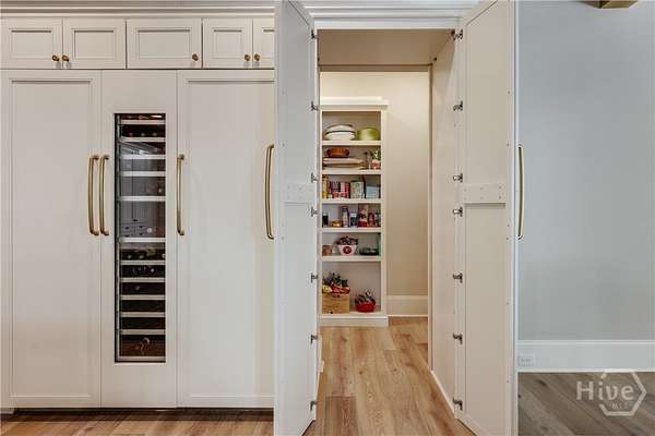 - Attic, Breakfast Area, Built-In Features, Butler's Pantry, Double Vanity, Entrance Foyer, Fireplace, Kitchen Island, Main Level Primary, Pantry, Primary Suite, Recessed Lighting, Separate Shower, Vaulted Ceiling(s), Wet Bar