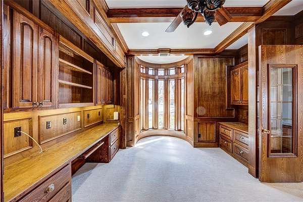 - Cathedral Ceiling(s), Central Vacuum, Chandelier, Decorative Lighting, Double Vanity, Dry Bar, Flat Screen Wiring, Granite Counters, Kitchen Island, Multiple Staircases, Natural Woodwork, Open Floorplan, Paneling, Pantry, Vaulted Ceiling(s), Walk-In Closet(s), Wet Bar, Wired For Data