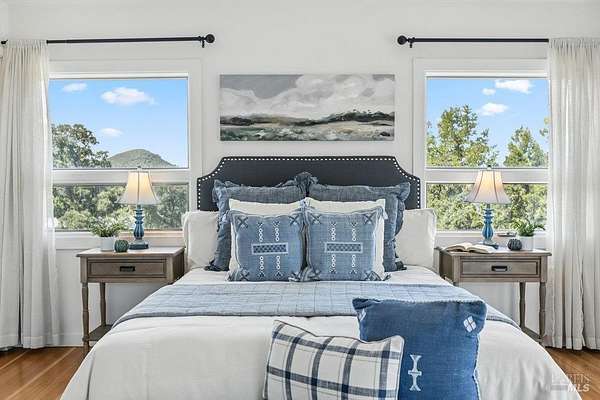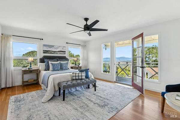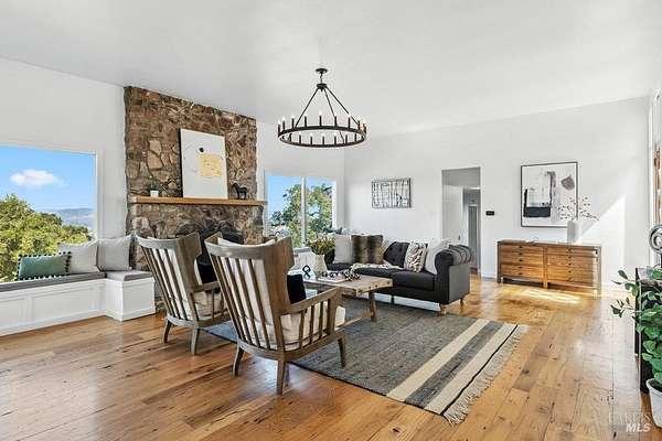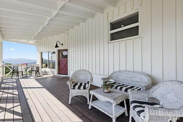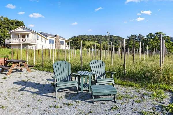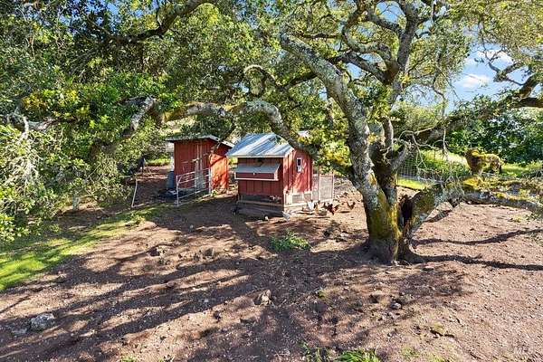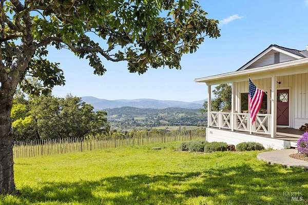 Wake up to what might be the most spectacular view in Napa! Perched above the premiere Coombsville AVA, this exceptional mid-century farmhouse offers sweeping vistas of vineyards, lake, and mountains. Nestled on a peaceful country road yet just minutes from downtown Napa. Watch the sunrise with coffee on the expansive view deck, collect fresh eggs from your hens for breakfast, and end your day with a glass of wine as the sun sets over the front porch. The main home has stunning views from all windows. There is a wine cellar, butler's pantry/laundry room, and timeless farmhouse charm. The detached barn is a true retreat with an office, massage room, gym, bathtub with a view, lounge, and game area. Outdoors, enjoy a teepee hideaway, bocce court, a dry-farmed Cabernet vineyard, garden beds, and your own chicken coop. This is wine country living at its finest: private, peaceful, and surrounded by beauty.