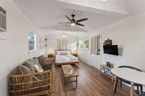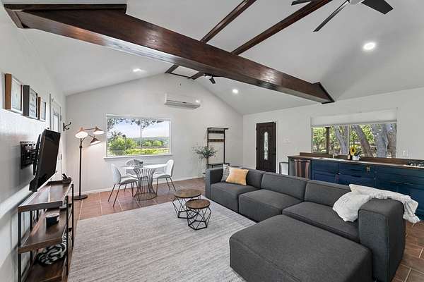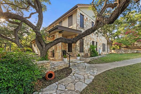 This ~3.6-acre estate feels like a hidden village--rich with growth possibility, whether it be a multigenerational homestead hobby farm or left as-is as an income-producing short term rental property. Located just north of Canyon Lake, the property includes an ~2236 sq ft 3BD/2.5BA main residence and two fully remodeled studio cottages, each with private hot tubs and hand-built outdoor living spaces (~393 and ~700 sq ft). Native stone paths wind through heritage oaks with long-range Hill Country views, creating a serene, park-like setting. An ~1,800 sq ft metal winery building is fully outfitted for wine production and tasting, with an irrigated boutique vineyard that has supported a full crop of Lenoir/Black Spanish grapes. Two wells, full irrigation, a plumbed concrete pad, an electric car-charging/RV station, and full perimeter fencing with two electric gated entrances enhance both function and flexibility. This rare Hill Country gem is less than an hour from Austin or San Antonio and has an established short-term rental presence and endless potential for creative and unrestricted use. Additional features include a greenhouse with irrigation, a detached 2-4 car carport with upstairs storage, stone firepit seating areas and built-in BBQ pits, with room to add more dwellings, gardens, or a pool. The property is ideal for those seeking space to gather, create, grow, or simply enjoy the peaceful rhythm of Hill Country life.