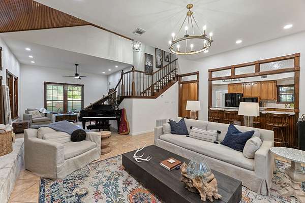 - Breakfast Bar, Ceiling Fan(s), Chandelier, Eat-In Kitchen, Entrance Foyer, Granite Counters, High Speed Internet, Kitchen Island, Master Downstairs, Natural Woodwork, Open Floorplan, Pantry, Recessed Lighting, Smart Home, Smart Thermostat, Storage, Vaulted Ceiling(s), Walk-In Closet(s), Wired For Data