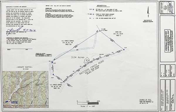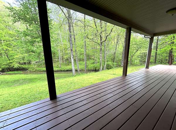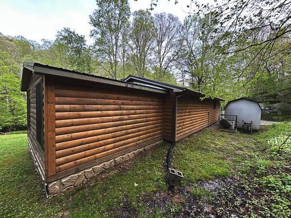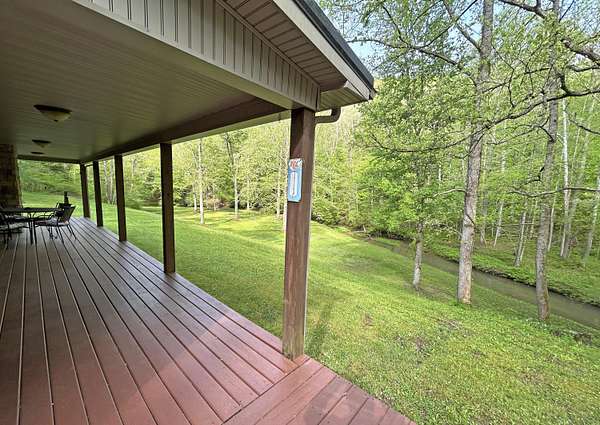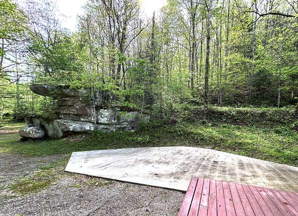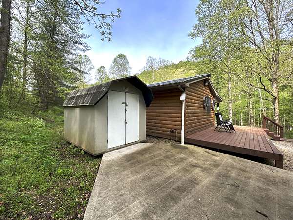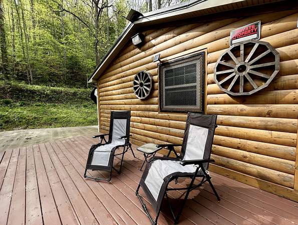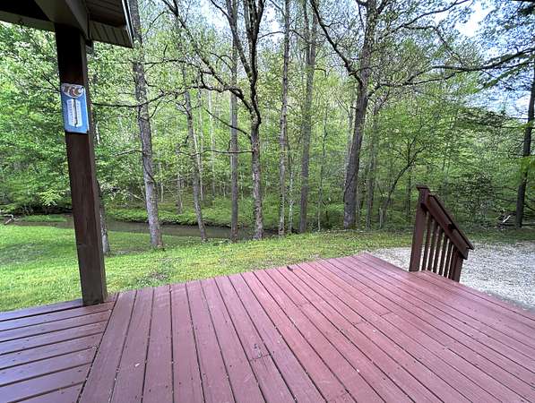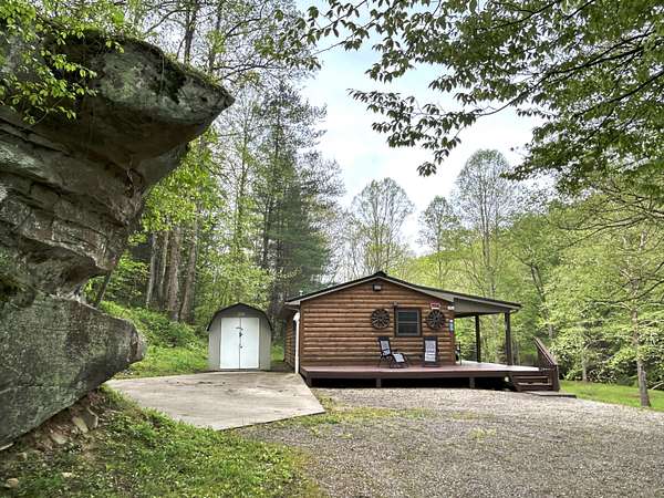 Looking for off-grid living in a park-like setting? This fully-furnished cabin offers incredible scenery along the pristine waters of Raccoon Creek, surrounded by umbrella magnolias and other historic flora and fauna. Totally off-grid with no electricity and water service available, but you can still enjoy modern conveniences with the rainwater-fed cistern, a propane-powered hot water heater, range, wall heater and refrigerator, an electric-powered water pump for the sinks and toilet, and ceiling fans and electric plugs throughout. The breaker box is powered by a gas generator kept out back in a steel cage. Rooms include a large primary bedroom and smaller bedroom, a utility/storage room, a full bath, and great room with large kitchen, dining room and living room with stone faced fireplace. Cozy but spacious, there's lots of room for family and friends. The covered porch, side deck and shed adds outdoor living space and storage.This 3.04 acre homested joins the Daniel Boone National Forest in front and borders Raccoon Creek Road in the back. Enjoy hiking, horseback riding, off road adventures and endless outdoor activities right outside your door on the 4-mile Renfro Loop multi-use trail. S-Tree Campground and the Sheltowee Trace trailhead, the ultimate 343-mile National Recreation, is just a mile away. This property comes move-in ready and is completely furnished! Please note: cell service is spotty in this area. Raccoon Creek Road is off to the right, about a half mile before you head into the S-Tree Campground. Please allow extra time to schedule a viewing of this property. Manual start-up of electricity and water service is required, so listing agent's assistance is required for set-up before showing.