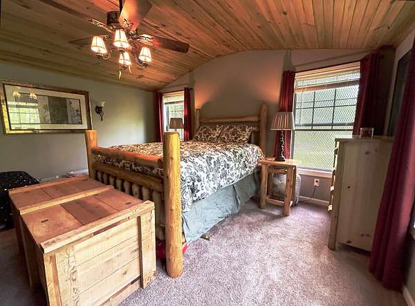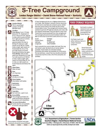Directions: From London I-75 Exit 41, go east 1.1 mi. Turn left onto KY-30 E. Go 8.3 mi. Turn left onto KY-3630 and keep right for 4.6 mi. Turn left onto Hwy 2002 and keep right 5.1 mi. Turn right onto KY-89 N and go 6.4 mi. Turn left onto Whetstone Branch/Hill Rd. and go 1.3 mi. Turn left onto S Tree Tower Rd. and go 1.5 mi. Turn right onto Raccoon Creek Rd. Go 1.1 miles. Driveway down hill on right. (Raccoon Creek Road turns off the left about a half mile before the entrance into S-Tree Campground) Please note, the road is not suitable for low riding sedans! AWD or 4WD car or truck is definitely recommended.