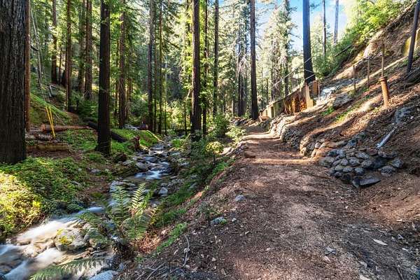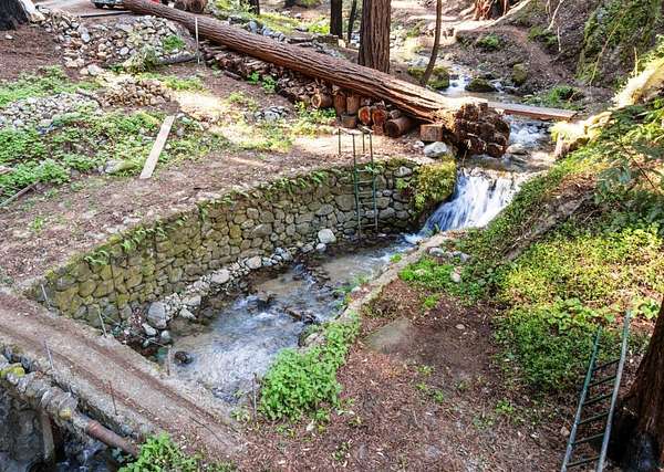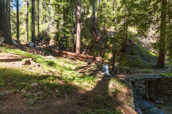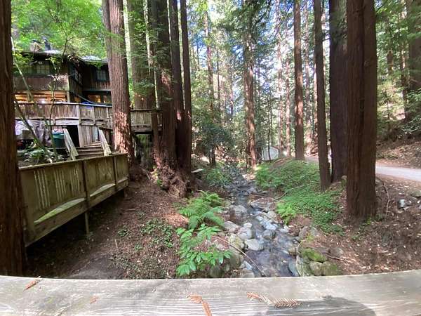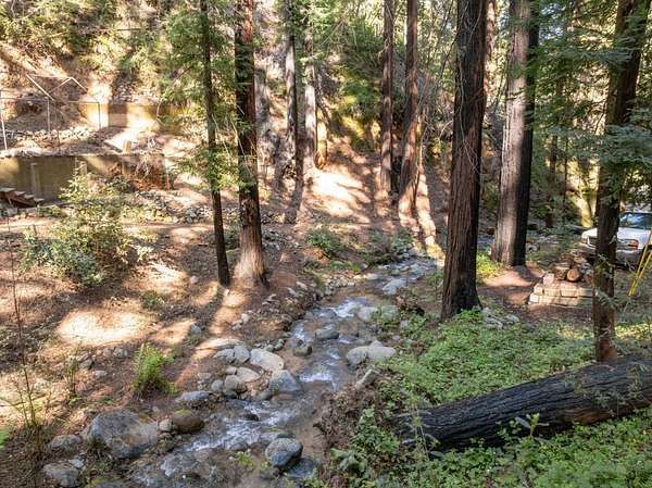 Come hear the creek, feel the fresh air under the redwoods and see one of the most extraordinary swimming holes you may ever encounter and know this place is something rare. Set along a year round spring-fed waterway with an 8 foot waterfall, granite steps, and flagstone patios it's a private retreat shaped by nature. This property carries a thoughtfully prepared future. After losing their home in the CZU Fire, the sellers spent years completing geo and environmental reports, house plans, septic design, native plant restoration, and engineering for new vehicular and pedestrian bridges. Pre-clearances are in place for a 1,594sf 3BD/2BA home plus a future 680sf 1BD/1BA ADU. Water is connected, PG&E in process, gas, cable, and existing septic on site, along with salvaged brick from the original 1909 fireplace. Brookdale's history includes early filmmaking and the iconic Brookdale Lodge. In the 1990s this property became a filming location for Redwood Curtain, starring Jeff Daniels and John Lithgow. Its easy to fall in love with this property for the same reason so many have over the decades summers spent swimming, evenings around the stone fireplace, and the peaceful sounds of nature. A rare opportunity to build a new home in an old-soul setting unlike anything else on the market.