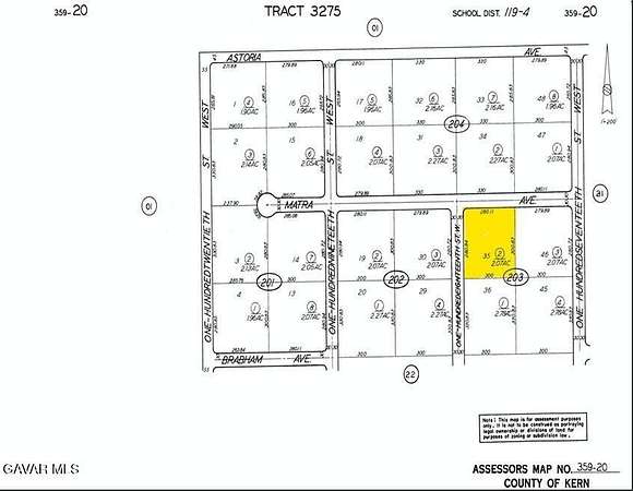 Est $112/mo2.07 acre residential lot at the corner of Matra Ave & 118th St West. Zoned for 2.5 acre estates.APN 359-203-02.