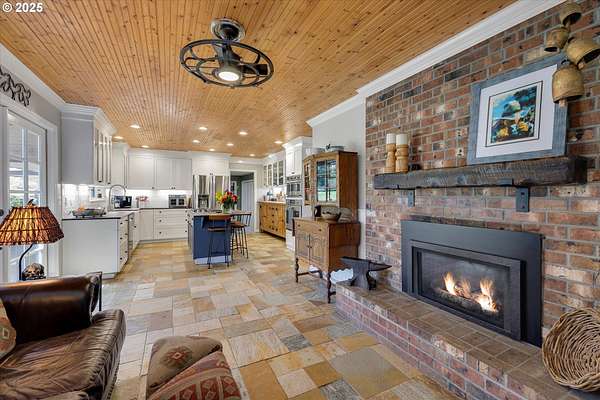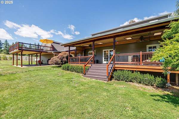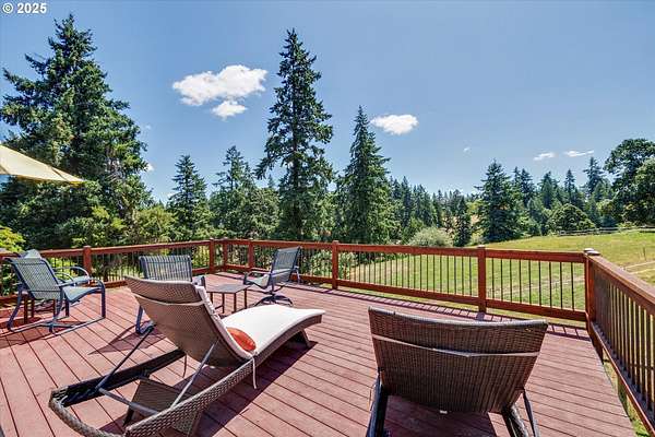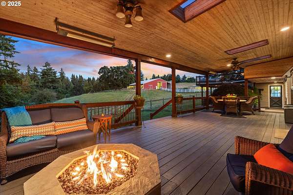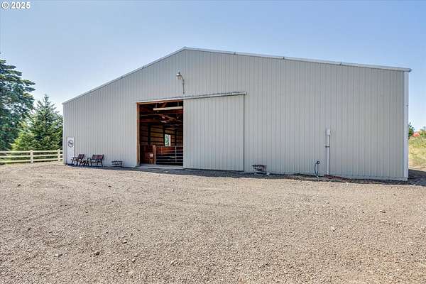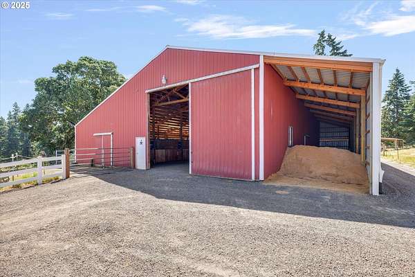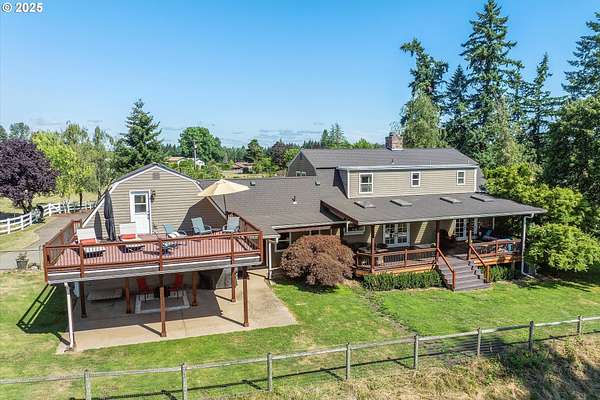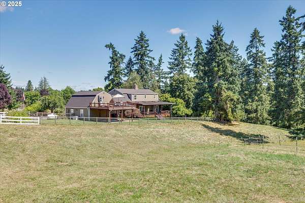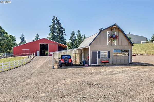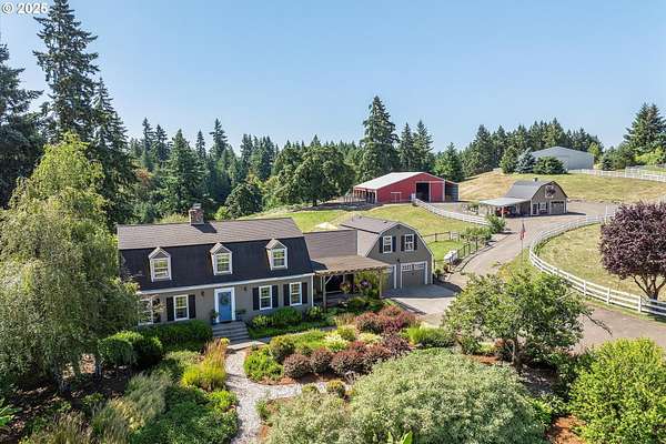 Discover the perfect blend of classic elegance and country charm with this exceptional 30-acre equestrian estate. Nestled amid rolling hills and open pastures, this private, gated retreat offers a luxurious lifestyle in a serene setting-just minutes from the conveniences of Canby and Oregon City. At the heart of the property sits a beautifully remodeled 3,000+ sq ft farmhouse, where quality craftsmanship and attention to detail shine throughout. With 4 bedrooms and 4 bathrooms, including a second primary suite, the home offers both comfort and flexibility for multi-generational living or guest accommodations.The gourmet kitchen, complete with a cozy fireplace nook, is the true centerpiece-ideal for quiet mornings . Multiple decks create effortless indoor-outdoor living, perfect for hosting gatherings or enjoying evenings around the fire pit.To support your equestrian dream is a 7-stall barn complete with a spacious hay loft, shavings shed, and everything you need to care for horses in comfort and style. The impressive 71x144 covered arena features a heated tack room and a dedicated viewing area, making it ideal for training and year-round riding. 6 fenced pastures and mud free/all weather paddocks make it easy to manage pony-life. Meandering trails and a serene pond, offer opportunities to enjoy riding, or hiking on your own expansive estate.Additional highlights include a well-equipped shop and greenhouse with a number of raised beds for the gardening enthusiast .Whether you're a seasoned equestrian, hobby farmer, or simply seeking a peaceful place to call home this is more than a property-it's a refined lifestyle, where luxury meets functionality in a beautiful country setting. And for peace of mind, the whole-house generator is hardwired in the event of emergency.