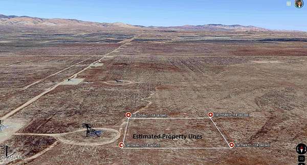 Est $112/moThe Owner will carry, Easy payments, Any Credit OK. Antelope acres area, very nice homes nearby.Fully accessible lot per plot map. 2+ - Acres of flat land on dirt road. Just 1mi+ north of Ave D (Hwy 138) Nice area of west antelope area. Great Mtn Views. Please email me for more useful pictures. We have many others. Address is just an approximate