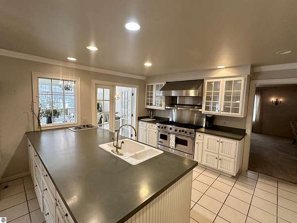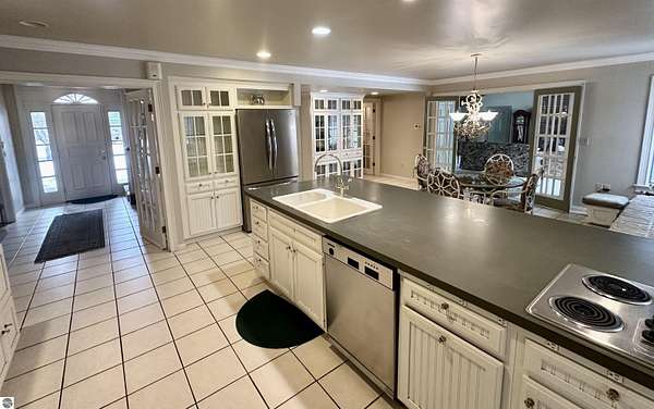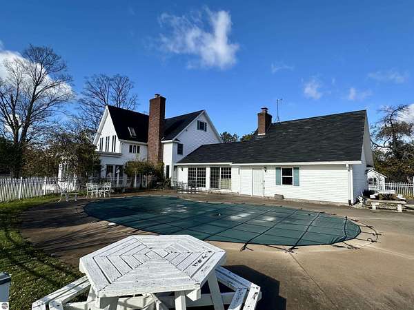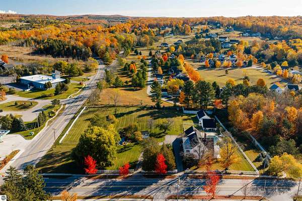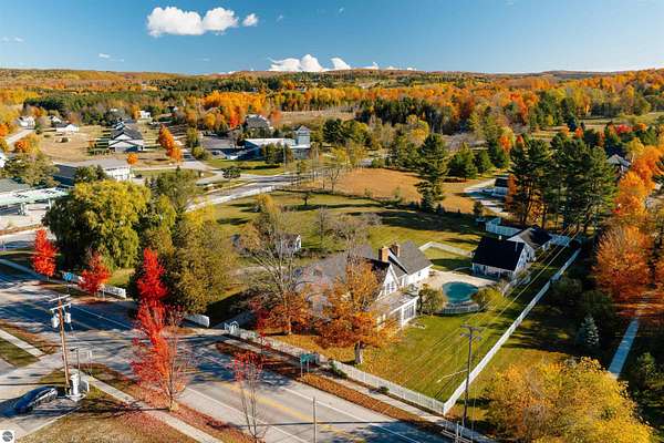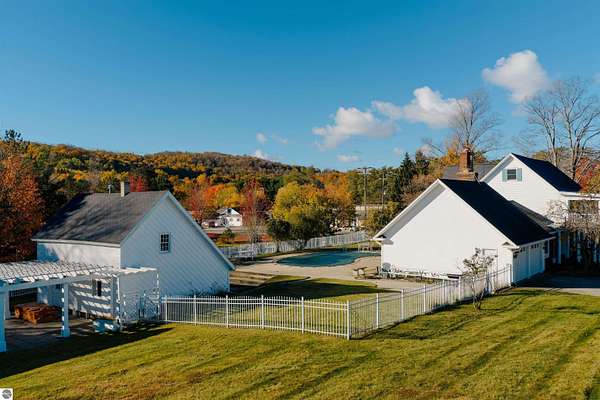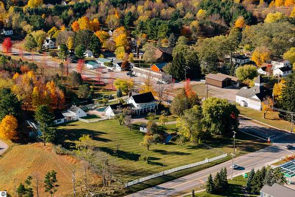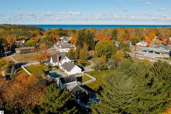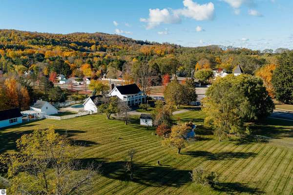 What if the most desirable venue in Empire is simply waiting to be reimagined? Situated on over 3 acres in the heart of downtown Empire — walking distance to Empire Beach, local shops, and restaurants — this rare offering combines scale, flexibility, and location in a way that is nearly impossible to replicate. The expansive main residence features multiple gathering spaces, two fireplaces, a Viking professional double oven cooktop, a natural light-filled three-season room, and a private office with custom cherry built-ins from floor to ceiling. Upstairs you’ll find four bedrooms — three with private ensuite baths, including two primary suites. A finished third-level attic spans the length of the home, providing additional flexible space and storage.Outdoor amenities further expand the possibilities. The in-ground pool is complemented by three accessory buildings: a 28x16 pool house with architectural character and an unfinished second level, a 40x24 garden house/workshop with 14 ft ceilings, drive-in garage door, and 240-volt service, and a 24x12 pond house with electricity powering the pond and irrigation systems. Included in the sale is a separate high-visibility corner parcel at M-22 and M-72, also zoned residential/commercial, offering exceptional exposure and long-term income potential. With mixed-use zoning in place (buyer to verify intended use with the Village of Empire), the framework exists for a boutique hospitality concept, destination retreat, live/work compound, or event-based venture. Moments from Sleeping Bear Dunes National Lakeshore, Glen Lake, and a direct route to Traverse City, properties with this scale, zoning flexibility, and positioning rarely become available in Empire. This is more than a home. It is an opportunity to create something iconic.