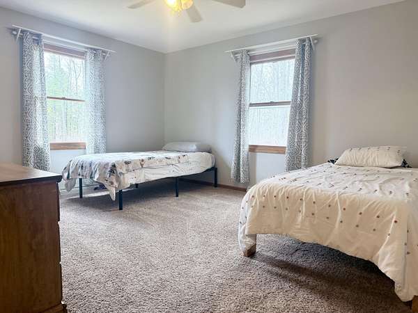 Tucked away on 10 beautifully wooded acres, this stunning 5-bedroom, 4-bath home with attached 2 car garage offers the perfect blend of privacy, space, and modern comfort. Step inside to an inviting open floor plan with abundant natural light, creating a warm and welcoming atmosphere ideal everyday living. The main level features three spacious bedrooms, including a luxurious primary suite complete with a spa-like attached bath and a large walk-in closet. The thoughtfully designed layout continues into the fully finished walk-out basement, where you'll find two additional bedrooms, ample living space, and endless possibilities for guests, a home office, or recreation. This isa rare opportunity to enjoy country living with all the comforts of a well-appointed home.