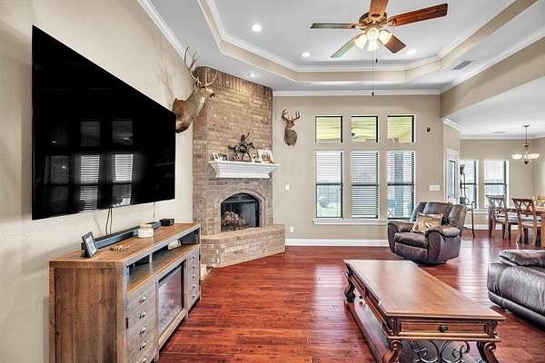 Est $2,758/moBeautiful 4-bed 3-bath country home on 1.52 acres in Greenwood! This spectacular homestead features 2,460 sq ft of open floor plan, inviting entry, formal dining, & cozy fireplace! Gourmet kitchen w/ granite countertops, island, custom cabinetry, double ovens, & stainless appliances. Enjoy a bright breakfast nook & bar, wood flooring, crown molding, & tall ceilings. Sequestered master including master bathroom w/ jettet tub, shower, walk-in closet, & dual vanities. Covered porches, tons of parking ( +parking pad), fenced yard, & matching brick well house complete this inviting home! Call now!