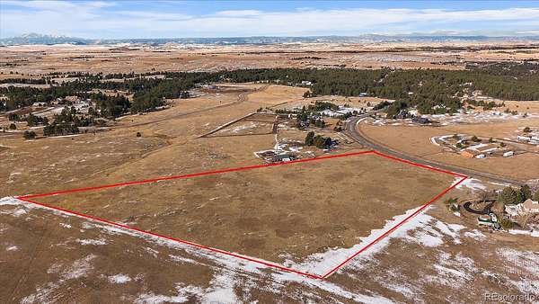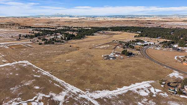 Rare opportunity to own within the sought-after Russellville community in Franktown. This 9.67-acre homesite offers a rare blend of privacy, views and versatility. Gently rolling terrain opens to sightlines of iconic Pikes Peak, creating a dramatic backdrop for your future home. Multiple building envelopes allow you to design and position your residence to fully capture the mountain vistas and endless Colorado sunsets. Enjoy easy access on paved roads, making travel to and from the property simple in any season. Conveniently located just 10–15 minutes from CO-83, CO-86 and Castlewood Canyon State Park, you’ll find the perfect mix of quiet country living and close proximity to everyday conveniences like dining & shopping. In addition to its scenic surroundings, this location places you near endless outdoor recreation, including hiking, horseback riding trails and all the benefits of Colorado’s active lifestyle.