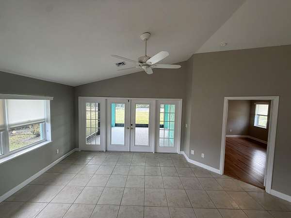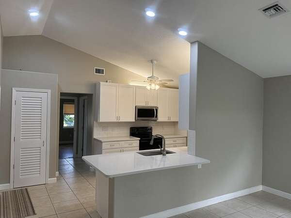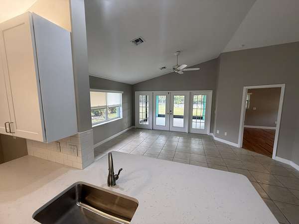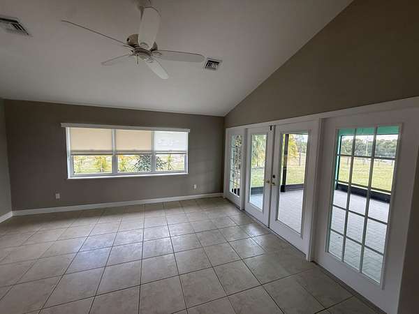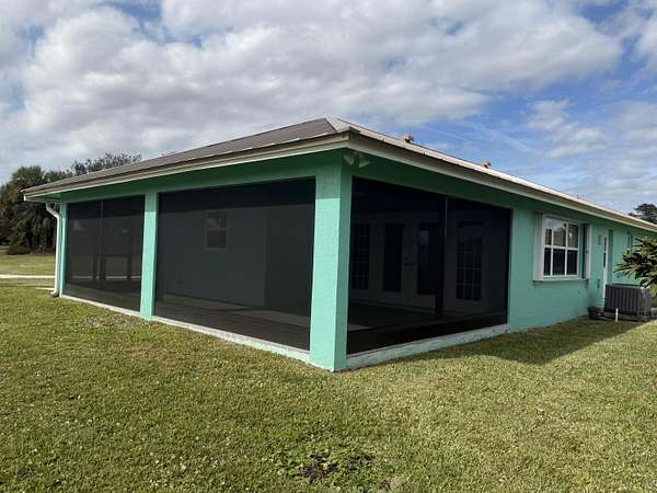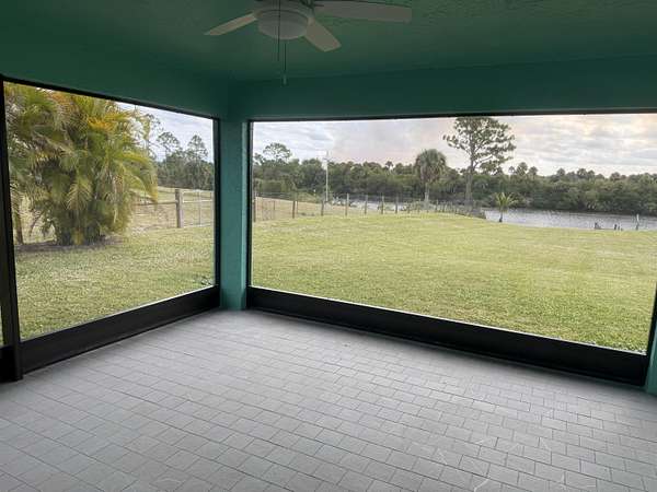 COUNTRY GUEST HOUSE! Come and live in paradise in this commuter's dream just minutes west of I-95 and the Turnpike! RIVER Views, 2 acres with your very own banana trees. Features you would find in the newest high end homes like a super sized L-shape lanai, volume ceilings, concrete block with new metal roof, custom tilework and a great open design with white cabinets and white quartz countertops!