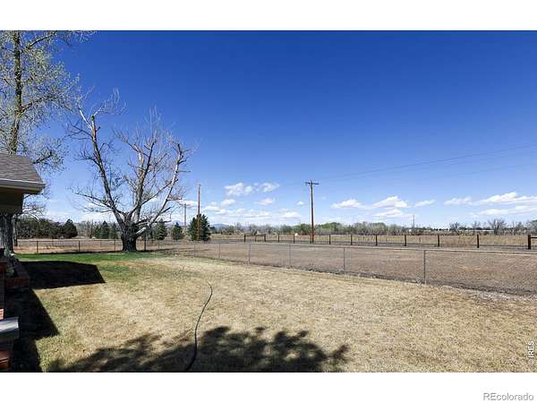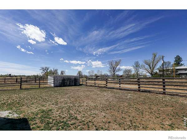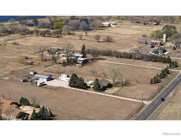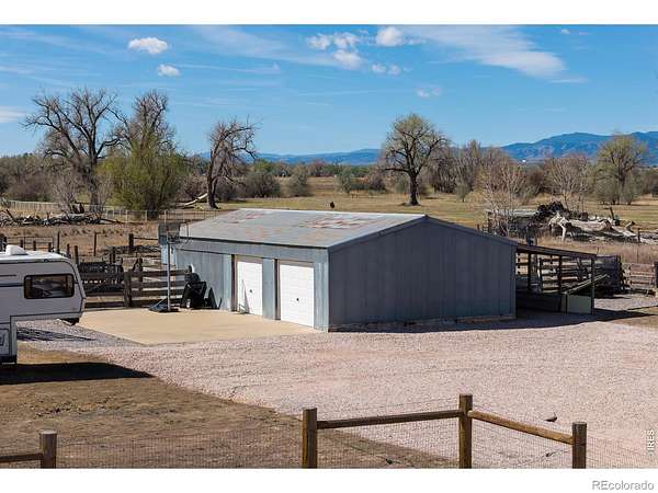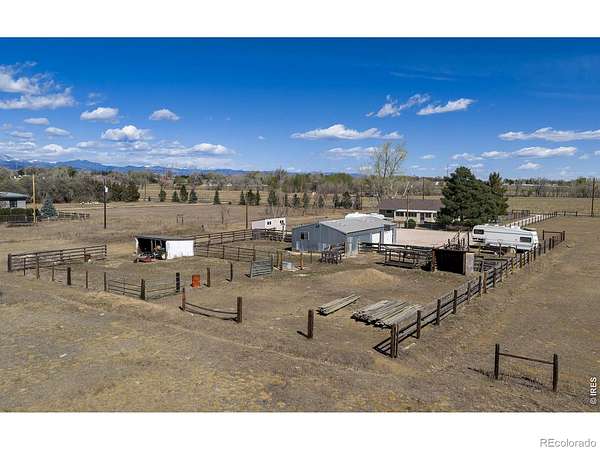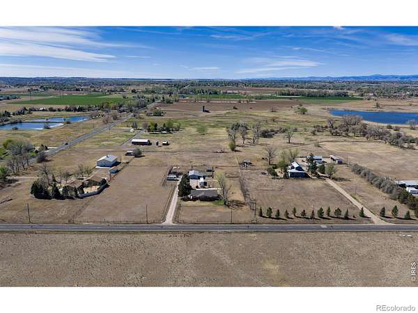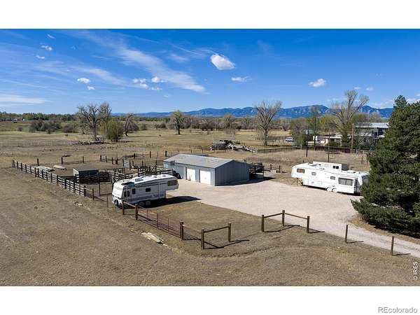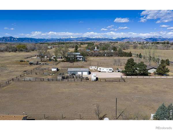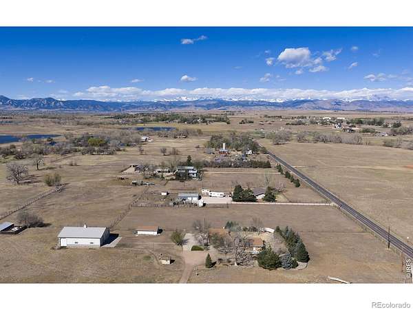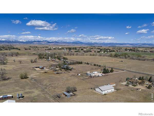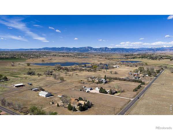 Experience the best of Colorado country living on this remarkable 4.76-acre ranchette, where sweeping foothill and snow-capped back-range views set the scene for peaceful afternoons and unforgettable sunsets enjoyed from the covered front porch or the inviting back patio. Designed for effortless main-floor living, the home features 4 bedrooms, 2 bathrooms, a spacious living room, and a beautifully remodeled kitchen showcasing custom hickory cabinetry, granite countertops, stainless steel appliances, and gleaming hickory hardwood floors. The expansive property is perfectly equipped for a small farm or ranch, offering a 45' x 24' barn with a 24' x 24' two-car garage area, RV or boat parking, a tack room or hay storage area, two loafing sheds, and a large chicken coop that could easily serve as additional storage. Other updates include a newer roof in 2018, and the septic system was completely replaced in 2000. There is an old permitted domestic well that is currently not in use. Surrounded by open farmland, ponds, and small lakes, the setting delivers true rural charm with all the space you need. Recently annexed into the Town of Erie, this property presents exciting possibilities for future use. With Agricultural zoning, no HOA, no covenants, and no metro district, the freedom here is rare-especially in Boulder County. Properties like this don't come along often.