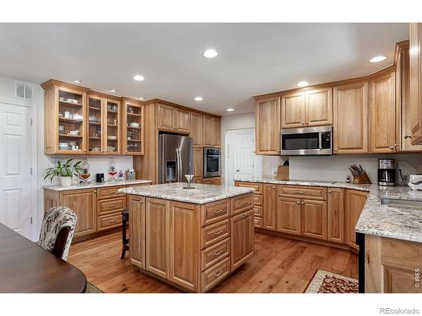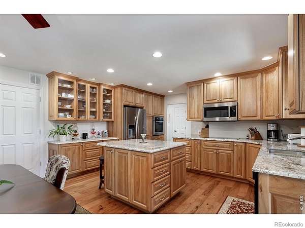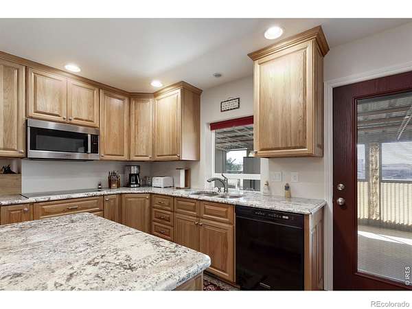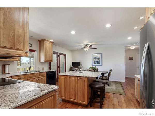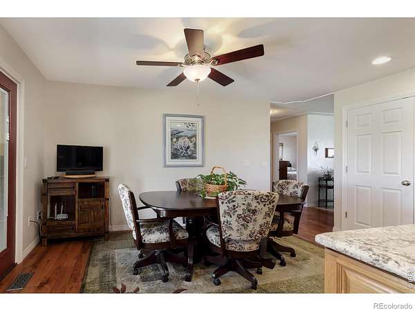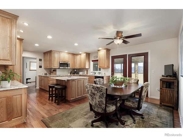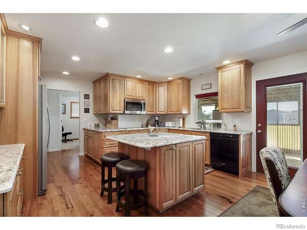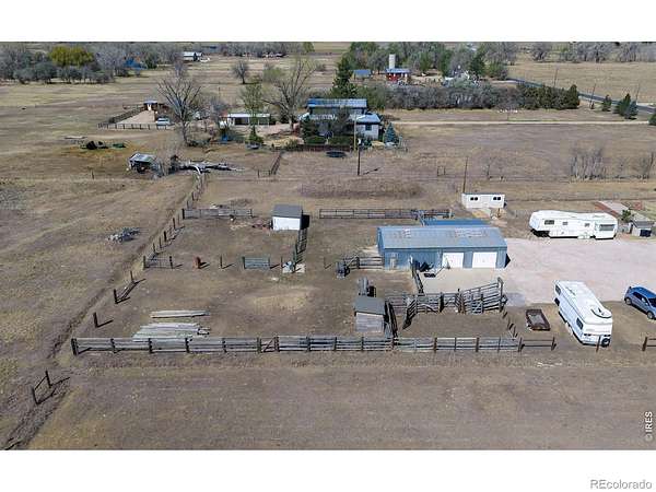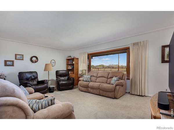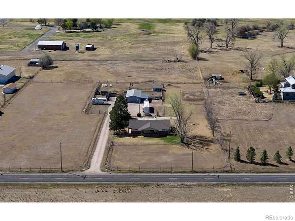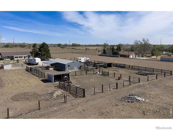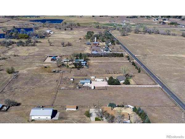 Experience the best of Colorado country living on this remarkable 4.76-acre ranchette, where sweeping foothill and snow-capped back-range views set the scene for peaceful afternoons and unforgettable sunsets enjoyed from the covered front porch or the inviting back patio. Designed for effortless main-floor living, the home features 4 bedrooms, 2 bathrooms, a spacious living room, and a beautifully remodeled kitchen showcasing custom hickory cabinetry, granite countertops, stainless steel appliances, and gleaming hickory hardwood floors. The expansive property is perfectly equipped for a small farm or ranch, offering a 45' x 24' barn with a 24' x 24' two-car garage area, RV or boat parking, a tack room or hay storage area, two loafing sheds, and a large chicken coop that could easily serve as additional storage. Other updates include a newer roof in 2018, and the septic system was completely replaced in 2000. There is an old permitted domestic well that is currently not in use. Surrounded by open farmland, ponds, and small lakes, the setting delivers true rural charm with all the space you need. Recently annexed into the Town of Erie, this property presents exciting possibilities for future use. With Agricultural zoning, no HOA, no covenants, and no metro district, the freedom here is rare-especially in Boulder County. Properties like this don't come along often.