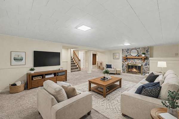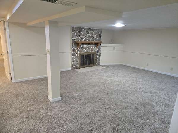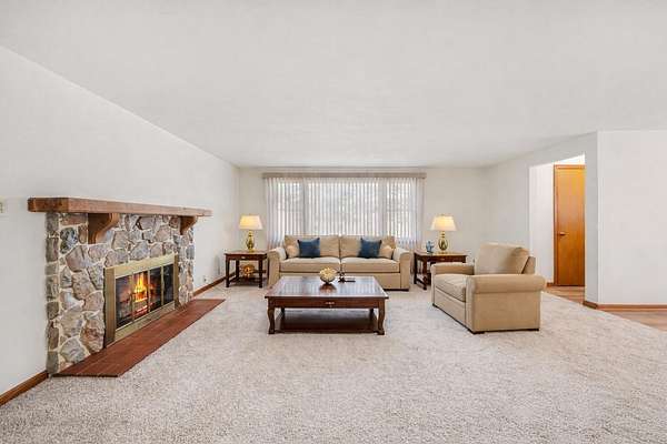 Looking for room to roam? This beautifully updated 3-bedroom, 2-bath ranch on 6 acres with new siding offers the perfect blend of comfort, functionality, and country charm. Step inside to find all new flooring and freshly painted interiors, creating a bright, move-in-ready space. The spacious living room features a stunning stone fireplace, perfect for relaxing evenings. The dining room sits conveniently between the living room and large kitchen, making it ideal for everyday living and entertaining. The kitchen offers abundant cabinet and counter space and includes all appliances. The washer and dryer are currently tucked neatly under the peninsula for convenience, but can easily be relocated back to the basement laundry area if desired. The main floor also features three generously sized bedrooms and a beautifully remodeled full bathroom. Downstairs you'll find a newly remodeled great room with a decorative fireplace, a remodeled 3/4 bath, and a possible office or fourth bedroom, providing additional space for living, working, or entertaining. The basement also includes a work/utility room and a separate laundry and storage area, iron filter and 2 tank softener included!. A breezeway with new carpeting connects the home to the attached 1-car garage, adding convenience and additional usable space. Outside, the property truly shines. With horses allowed, it's perfect for hobby farmers or anyone looking for space to enjoy country living. The property features partially fenced yard, 16x36 deck across the back of the home, a 24x32 three-car detached garage, and a 24x35 pole barn--providing plenty of room for vehicles, equipment, hobbies, or animals. Enjoy the peace and privacy of country living with plenty of room for work, play, and relaxation. 2 stage furnace & a/c are 2 years old. *photos show home virtually staged & the field after it is mowed