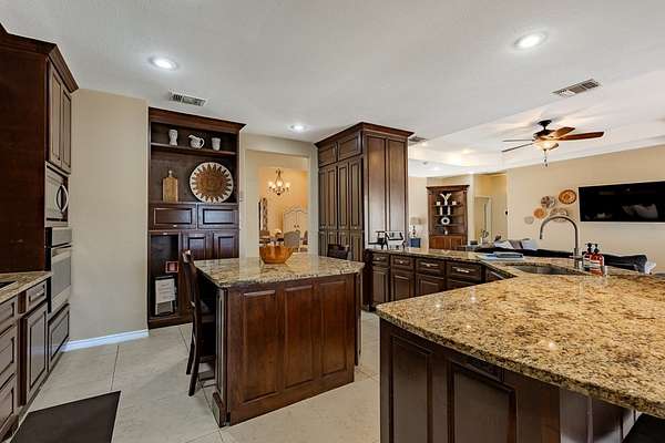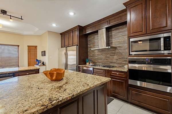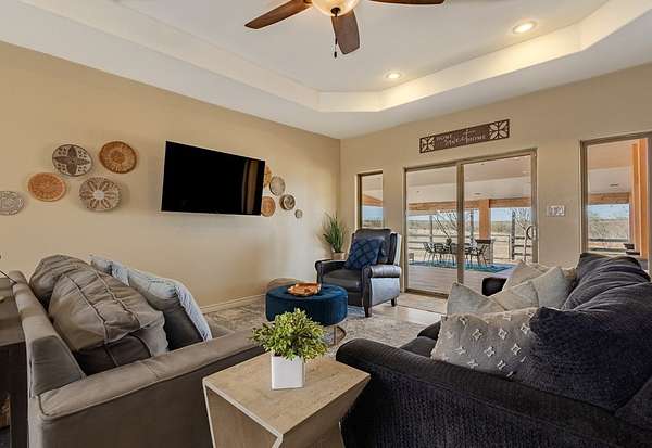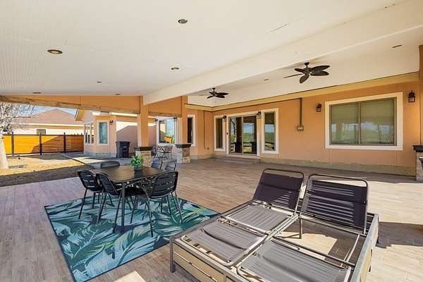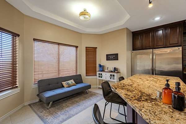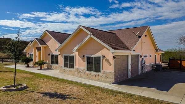 Spacious home with apartment on 1.69 Acres! Home offers an open floor plan with 2,486 sq.ft. of living space. The main residence features 3 spacious bedrooms and 2.5 bathrooms, with each bedroom offering its own walk-in closet. The large kitchen includes an island, microwave, stove/range, refrigerator, and matching granite countertops throughout the home. Windows fill the home with natural light, creating a bright and inviting atmosphere. The master bedroom boasts a large bathroom, while the laundry room includes ample storage and a convenient sink. Additional features include a 528 sq. ft. 2 car garage and a 580 sq. ft. covered back porch--ideal for entertaining and enjoying beautiful Texas-style view. The property sits on 1.69 fully fenced acres. An apartment is also included, complete with a kitchen, dining area, living room, two bedrooms, an office, and one bathroom. Great for extended family, guests, or rental income. A large storage shed is included.
