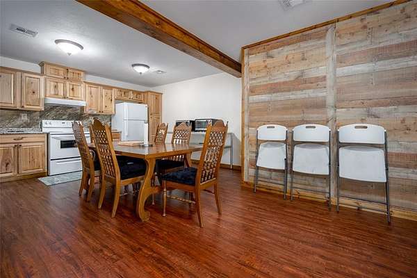 Are you looking for the perfect place to unplug and relax? This property is 15 acres of peace and quiet. A true retreat. Bring your whole family and lots of friends. There are two homes. The main house is a 1500sf metal building with 3 bedrooms and 1.5 baths + Laundry. The current home has beds that will sleep 14. The spacious kitchen has room for visiting while making meals for a crowd. There's tons of storage in the knotty alder cabinets and lots of counter space. Enjoy Laminate wood and tile throughout. The living room is large for gatherings and has two fans. There is a huge covered front patio for visiting or watching nature.