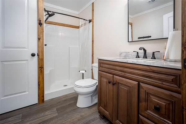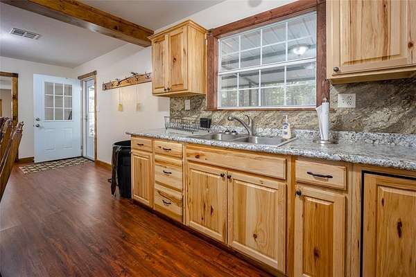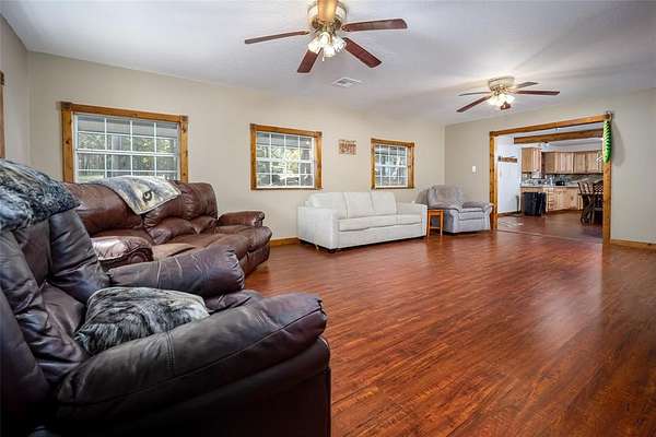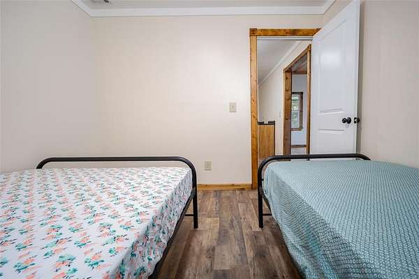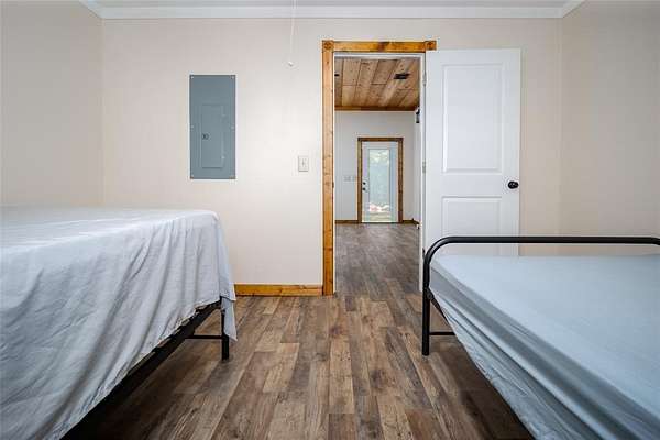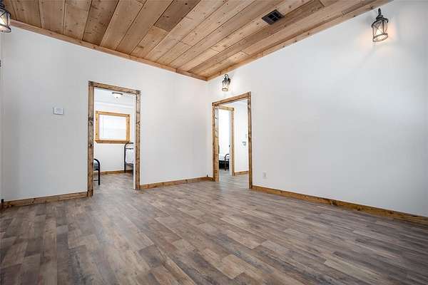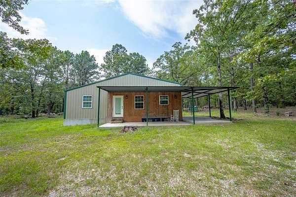 Are you looking for the perfect place to unplug and relax? This property is 15 acres of peace and quiet. A true retreat. Bring your whole family and lots of friends. There are two homes. The main house is a 1500sf metal building with 3 bedrooms and 1.5 baths + Laundry. The current home has beds that will sleep 14. The spacious kitchen has room for visiting while making meals for a crowd. There's tons of storage in the knotty alder cabinets and lots of counter space. Enjoy Laminate wood and tile throughout. The living room is large for gatherings and has two fans. There is a huge covered front patio for visiting or watching nature. The second metal home was recently finished out (2025) and has 4 bedrooms and 1 bath. The kitchen area has cabinets and counters, but will need to be finished out. Plumbing is stubbed in for sink and washer/dryer. This homes current beds can sleep 11. If you had bunks it could sleep even more. Solid surface flooring throughout. The cedar walls and beams give it a refreshing cedar smell!! There is a covered metal patio on two sides with concrete. The main house has an aerobic system and the second house has a septic. Invite even more friends and have them bring their camper or RV. There are two RV hook ups in a cleared out area created just for them. There are two outbuilding. One loafing shed with tack room, great for a few animals or storing your mowers, ATV's or a boat. This property is across the street from public hunting lands and only a few miles from McGee lake or the Atoka Reservoir. Enjoy all that the outdoors have to offer. Each house has central heat and air. It's all electric and has Stringtown Public water. Enjoy two ponds, huge boulders and amazing tall pine trees. The peace and privacy would be hard to beat.