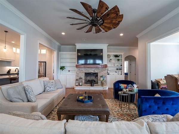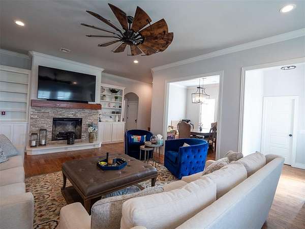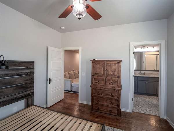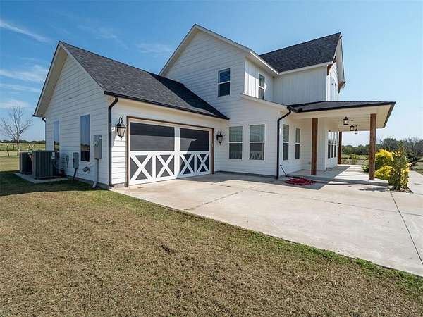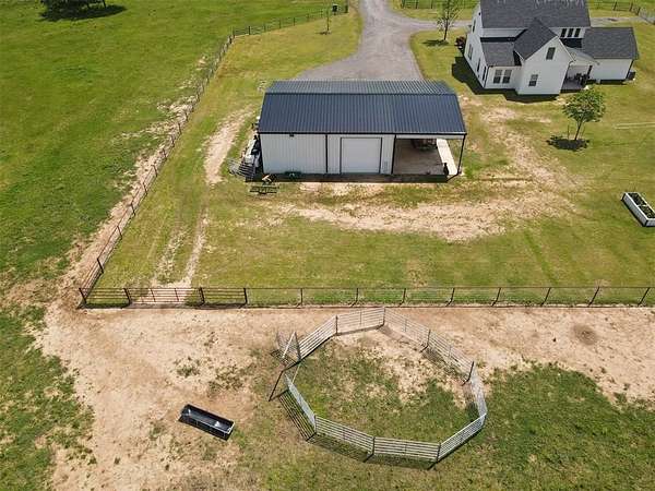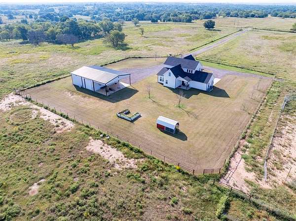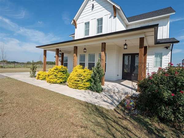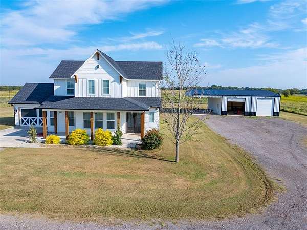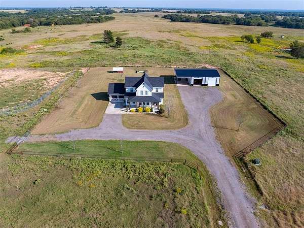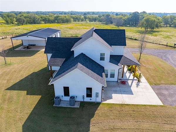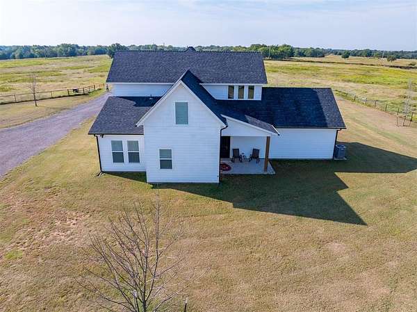 What a unique opportunity to own a modern farmhouse on 40 acres (MOL)! The property was recently active for cattle and equine with a roping area and some fenced and cross fenced pastures. The home, built in 2022, is quite lovely with a classic farmhouse look at first glance featuring a front porch that spans the full width of the home! Inside tells a different story, with the modern amenities and luxury features that should be enjoyed in the country, not just the city. Upon entry, the floorplan is open offering plenty of windows that invite loads of natural light and are finished out with custom plantation shutters. There are numerous high-end finishes throughout the home, such as oak hardwood floors, a solid wood fireplace mantle, custom kitchen cabinets W/ custom drawers, stainless appliances plus a warming oven & ice maker, AND gorgeous granite counter and island tops in the kitchen. The Primary suite is on the lower level and offers plenty of space for your furnishings and a spa-like bath with a large shower and walk-in closet. The laundry is pass-thru to the primary suite walk-in closet and a mud room with exterior access off the kitchen. The upper level offers a good size media/game room space and 3 additional bedrooms, 2 of which have bathrooms and walk-in closets. With a 2 car attached garage, plus a 40'x40' shop with 3 overhead doors, and a 20'x40' carport area off the shop, there is more than enough room for your equipment, boat, RV, or what other toy(s) you might need to keep out of the weather. To complete this package, there are 2 ponds on the property, a chicken coup and gardening area that is ready for your green thumb! Come see this paradise and you won't want to leave!