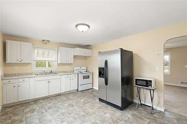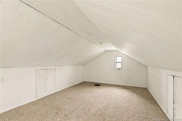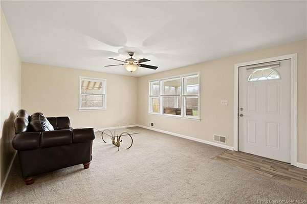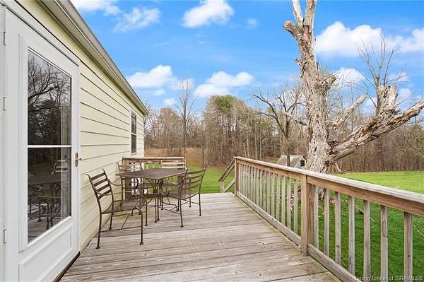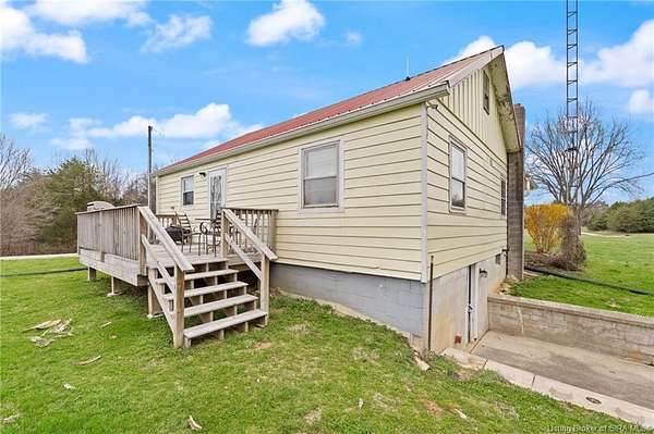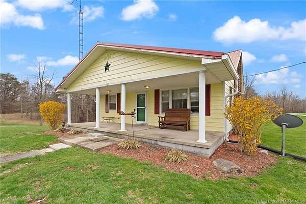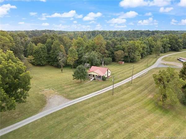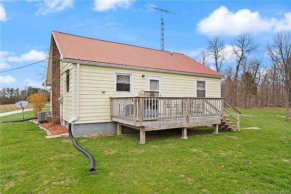 Secluded & PICTURESQUE setting just minutes from SCOTTSBURG and Madison! Nestled on 1.8 ACRES, this adorable home offers the perfect opportunity for a STARTER HOME, RETIREMENT RETREAT, or INVESTMENT PROPERTY. This 2 Bedroom, 1 Bath home also features the potential for a NON-CONFORMING 3rd Bedroom or additional living space upstairs. Step inside to a spacious Living Room with LARGE WINDOWS that fill the space with natural light. The UPDATED Eat-In Kitchen features modern finishes and includes ALL APPLIANCES, including a Stainless Refrigerator. Two generously sized Bedrooms share a RECENTLY RENOVATED Bath with a LARGE SHOWER. Upstairs offers flexible space ideal for a Family Room, Office, or non-conforming Bedroom. The WALK-UP BASEMENT provides excellent storage or workshop potential. Enjoy peaceful evenings on the BACK DECK overlooking the scenic property, complete with abundant wildlife and privacy. Home is being sold as-is but inspections are welcome. Sq ft & rm sz approx.