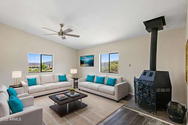 Hilltop living with panoramic views on 1.6 fully fenced acres! This 3 bed, 2 bath home includes a spacious family room and has been freshly updated with new luxury vinyl flooring, stainless steel appliances, new roof, new paint, fixtures, and deck. Enjoy the cozy wood-burning stove, RV parking, a brand-new 10x12 shed, and a freshly graded driveway. Zoned for horses, with paved road access and close to shopping, this move-in ready retreat is perfect for first-time buyers, retirees, or those seeking a peaceful second home.
