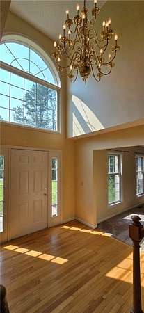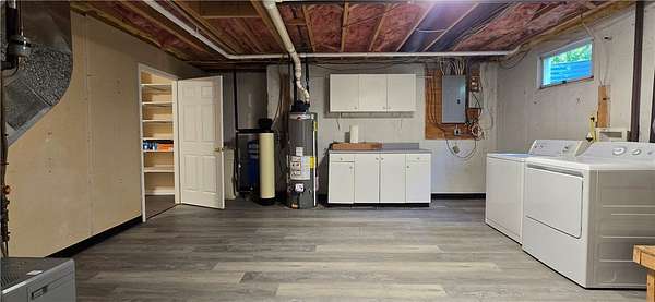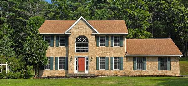 Come home to comfort and classic charm in this eye-catching brick colonial, set on a peaceful and private property just minutes from town. This spacious home has been updated with beautiful landscaping, heating system (2021), flooring (2019), and fresh carpet and paint. It features four bedrooms, including a large owner's suite, and an open kitchen and dining area that flows into a warm and inviting living room with a fireplace. The first floor also includes a formal dining room and a cozy family area, offering plenty of space for gatherings and everyday living. Walk out onto your deck and enjoy views of the yard and woods-perfect for relaxing, hiking, or entertaining. Connect with nature, whether you're spotting birds, deer, or other animals right from your backyard The roof is just 10 years old, offering peace of mind for years to come. The finished basement includes a comfortable family room, ideal for movie nights or quiet time together. There's plenty of space for storage, a hobby room for crafts or projects, and a utility room to keep things organized. With classic style, modern updates, and a quiet setting close to town, this home has everything you need.