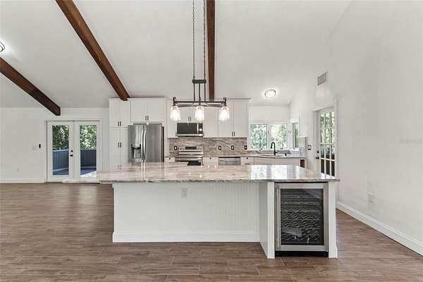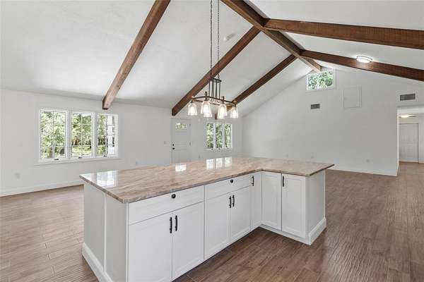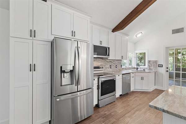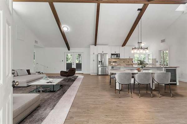 RIVERFRONT RETREAT on over 7 acres in Arcadia! Beautifully renovated, this home blends natural beauty with updated style and convenience. Set on over 7 acres, with a long winding driveway that welcomes you to your own private retreat. Inside, you'll find an open airy home that flows from kitchen to dining room to living room, making it a perfect set up for gathering with family and entertaining! Elegant finishes throughout the home include granite countertops, custom cabinetry, stainless steel appliances, and wood-look tile flooring that brings warmth and style to every room.