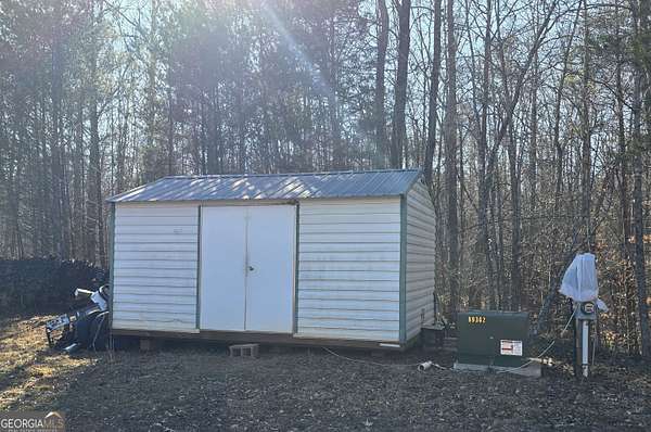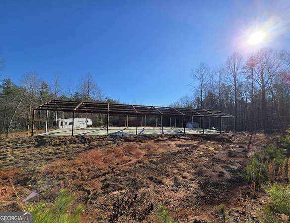 9.38 wooded acres with Barndominium construction started. Foundation poured with a 9' x 51' front porch slab, plumbing rough-ins completed, red-iron beams installed, 1,500-gallon septic tank in place, and construction power on site. The Arlington floor plan Barndominium kit (2,250 heated sq ft plus a 2-car side-entry garage with space for a workbench and storage) was purchased from Budget HomeKits and is on site. The package is designed to complete the exterior shell and includes interior metal studs. The manufacturer provides a detailed assembly guide, real-time consultation support, and options for plan or order modifications if desired. Exterior color selections include Buckskin Tan walls, a Galvalume roof, Polished Slate jamb trim, and coordinating trim to complement the roof and wall colors. The purchase also includes a powered storage building and a 40-foot shipping container. Several fixtures are on site and included: a wood stove, garage doors, windows, doors, and select special-order items, including a 60" x 36" flip-out/up kitchen window. An existing bored well is on the property, though the sellers had intended to drill a new well. A well company has previously confirmed the presence of a water table on site. Conveniently located with easy access to U.S. Route 441 and Interstate 85, as well as nearby shopping and restaurants. Shown by appointment only.