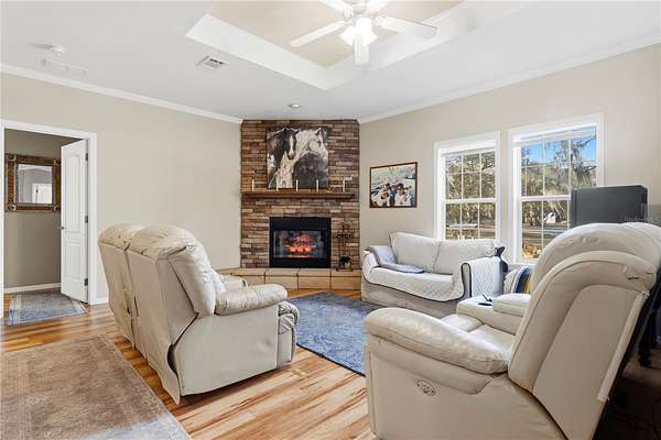 The second residence is a 2016 manufactured home offering 4 bedrooms, 2 bathrooms, and 2,280 sq ft of stylish living space fully furnished. Featuring luxury vinyl plank flooring, tray ceilings, an open floor plan, and a massive front porch, this home is currently tenant-occupied with a long-term lease, providing immediate passive income. It also has its own private driveway for added privacy.