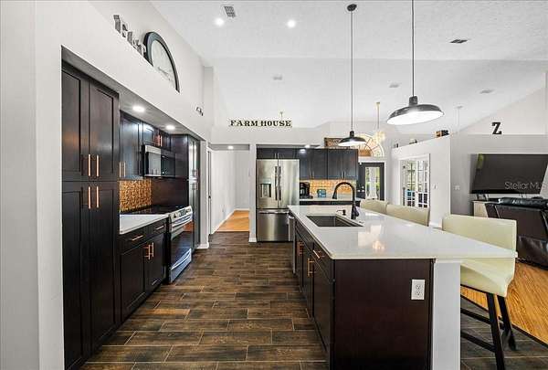 Nestled on 7.9 acres along SW Highway 484 in beautiful Dunnellon, this 7-bed, 4-bath, 4,271 sq ft estate is a true mini-farm with dual-residence income potential.