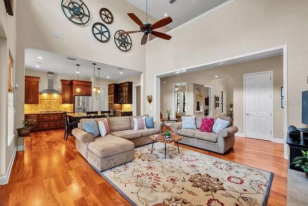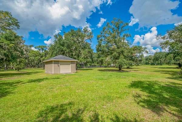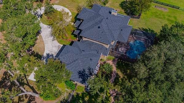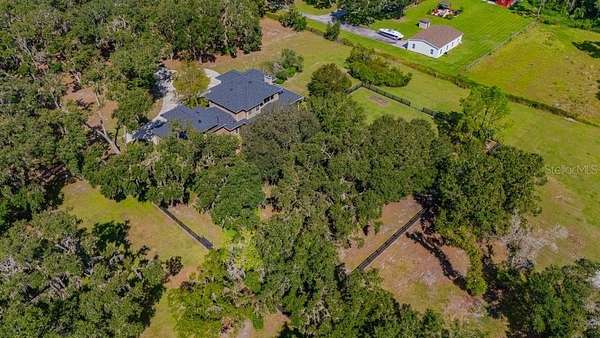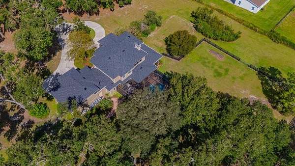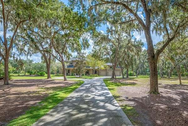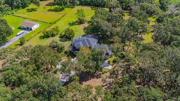 STUNNING LUXURY ESTATE feels like it's straight out of the pages of Southern Living Magazine with its elegant modern design and picturesque surroundings. This custom home is nestled on 5.76 fenced acres overlooking an unspoiled natural setting Conveniently located in the Doe Creek / Fishhawk Ranch vicinity. Escape to your own majestic peaceful paradise; this one has it all!! it doesn't get much better than this!! You'll enter through your private electric gate and drive up the winding driveway to this extraordinary and impressive 3940 sq ft custom home (5650 sq ft total) offering 4 bedrooms + 4 full bathrooms + formal sitting and dining rooms + game room + an expansive oversized 3-car attached garage + an unrivaled outdoor living space with private resort-style pool PERFECT for entertaining your family & friends! A 17KW home generator guarantees you are never without power. Your new home offers an OPEN FLOOR PLAN with high ceilings making it light, bright and spacious! You have upgrades everywhere including plantation shutters throughout the entire home. The spacious chef's gourmet kitchen is the heart of this home; it is open to the large great room with volume ceilings, faux wood beams and stone fireplace + large windows offering views of your inviting pool and beautiful property. The fabulous kitchen is chef's dream with gas cooktop, double ovens, pendant lighting, handsome wood cabinetry+ butler's pantry with a wine refrigerator + a dry bar/coffee bar. All of your bedrooms are generously sized with large closets. Recent improvements include new roof 2024, HVAC replaced 2018-2022, new hot water heater 2026, pool resurfaced 2025...this home is a must see. Step outside and enjoy an expansive covered patio and a sparkling pool and spa a wonderful space for making memories. Beyond your pool you can relax and unwind around your outdoor fireplace overlooking your picturesque property! NO HOA! Bring the boat, RV, horses, pets, bring it all! Located close to everything...yet tucked away w/privacy & peacefulness! Call today to schedule your private showing of this unforgettable "straight-out-of-magazine" home!!