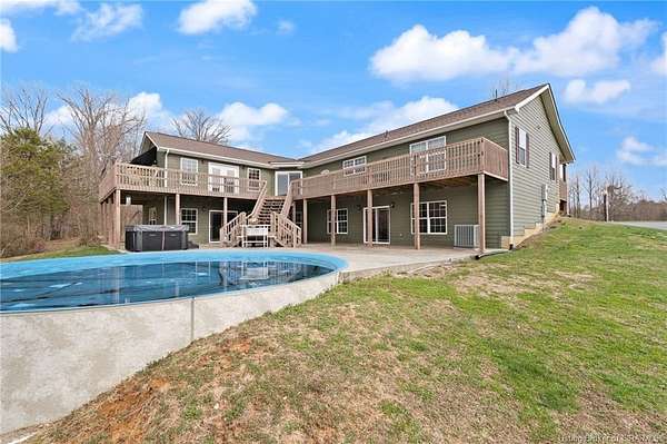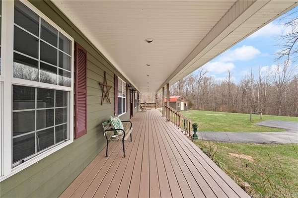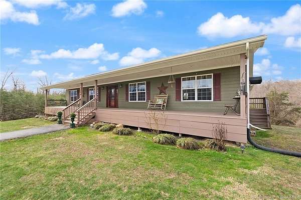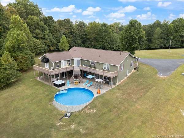 PRIVATE & SERENE RETREAT just minutes from SCOTTSBRG and Madison! This sprawling RANCH offers over 2,600 SQ FT of FIRST FLOOR LIVING on 15+ ACRES of picturesque land. Step onto the FULL-WIDTH COVERED FRONT PORCH and into a breathtaking OPEN CONCEPT layout featuring HARDWOOD FLOORS and SOARING CEILINGS throughout the main living areas filled with natural light. The CHEF'S KITCHEN is a showstopper with CUSTOM CABINETRY, TILED BACKSPLASH, STAINLESS APPLIANCES, and DOUBLE OVENS, perfect for entertaining. A music or sitting area welcomes you just before entering the expansive PRIMARY SUITE, which features FRENCH DOORS leading to the back deck and stunning POND VIEWS. The en-suite bath includes a JETTED TUB, SEPARATE SHOWER, and WALK-IN CLOSET. Bedrooms 2 and 3 are generously sized and share a full bath. The FULL UNFINISHED WALKOUT BASEMENT offers endless potential for additional living space, recreation, or storage. Outdoors, enjoy PANORAMIC VIEWS from the WRAPAROUND DECK overlooking a FULLY STOCKED 2-ACRE POND, ABOVE-GROUND POOL, SHE SHED, and a 36x80 POLE BARN with CONCRETE FLOOR & ELECTRIC. Explore OPEN & WELL-MAINTAINED TRAILS through the wooded acreage with abundant WILDLIFE throughout. NEW ROOF in 2025. ADDITIONAL ACREAGE AVAILABLE. A rare opportunity to own your own private retreat! Room measurements are approximate and should be independently verified by the buyer.